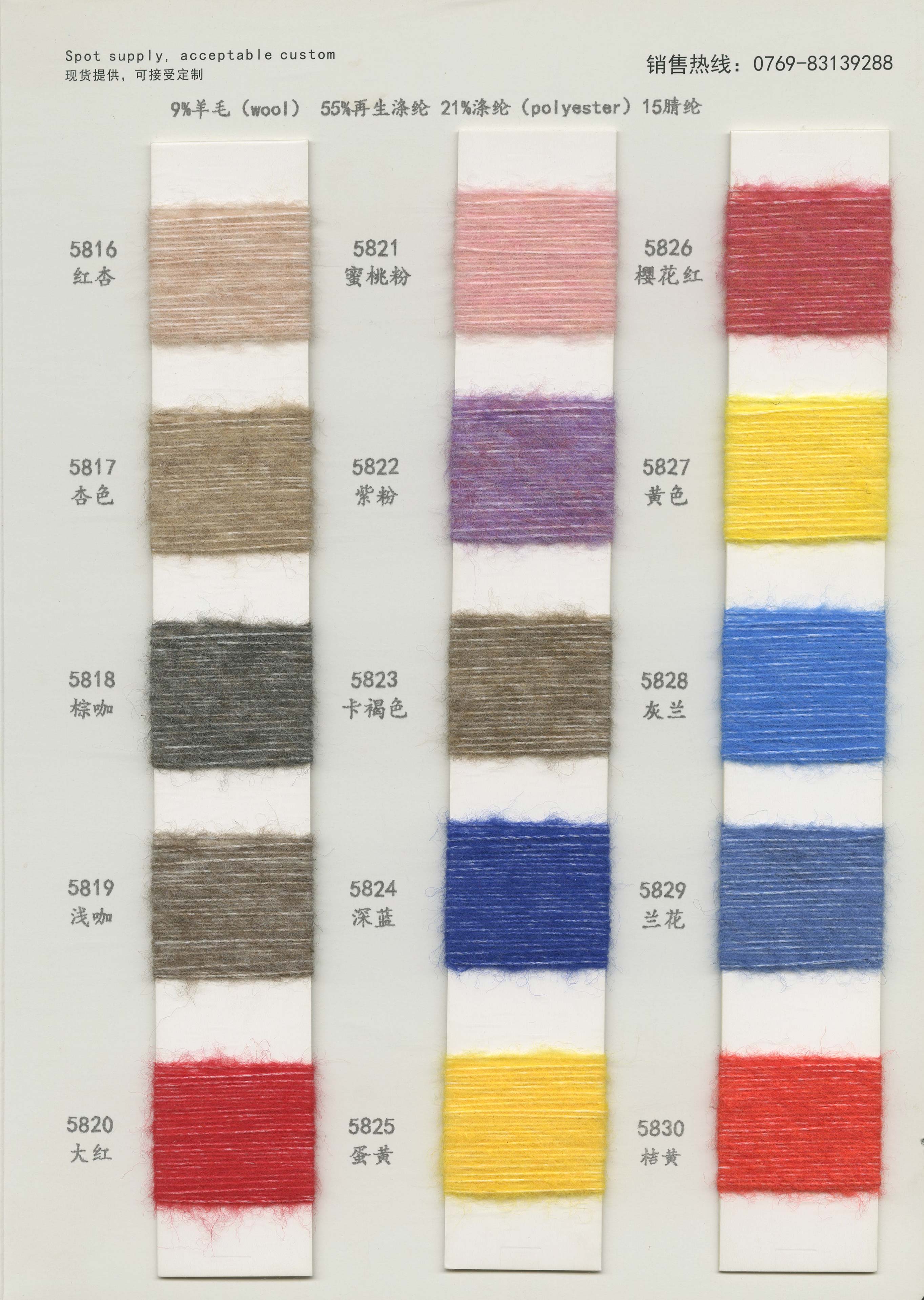 1/2.8NM花式噴毛紗、1/6NM蘇麗噴毛紗、1/5.5NM羊駝噴毛紗、1/6.5NM駱馬絨噴毛紗、1/3NM彩點噴毛紗、1/3.8NM閃光噴毛紗、1/2.8NM多彩噴毛紗、1/5.5NM色紡噴毛紗、1/3.5NM彩虹噴毛紗、1/3NM花式棉噴毛紗、1/13NM楓葉羊駝毛、1/