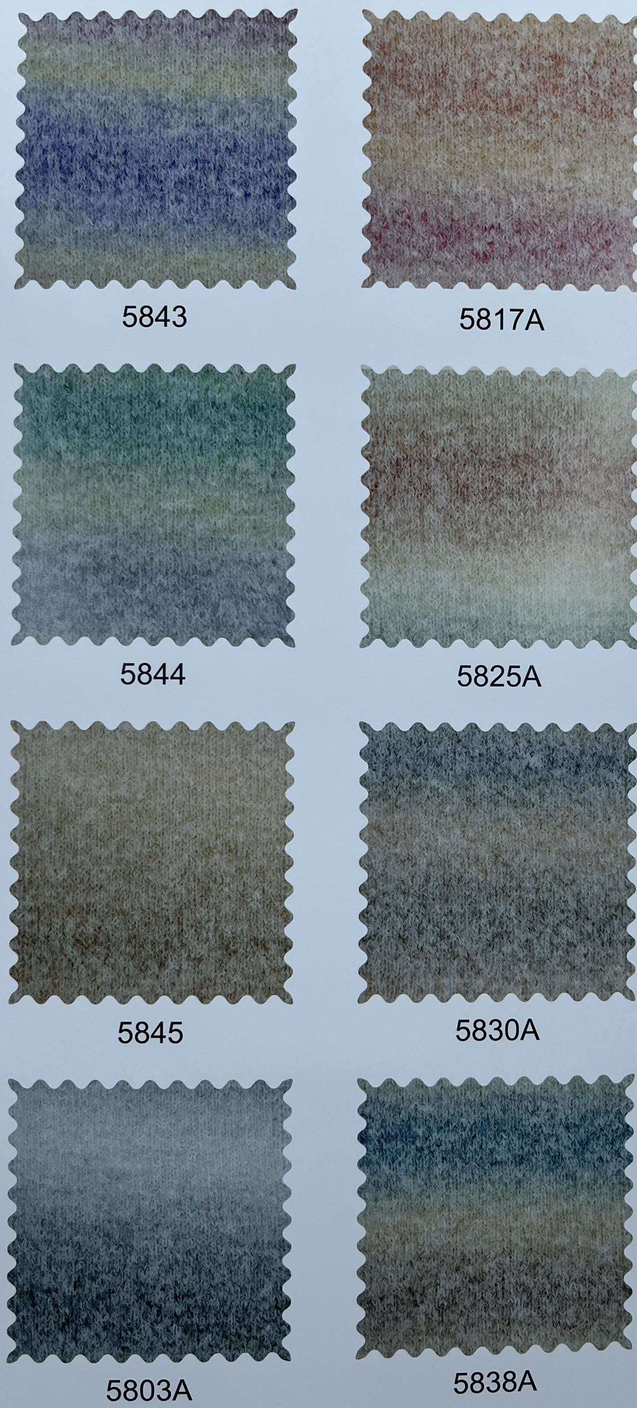 乒乓紗、菊花紗、絲絨紗、絲絨大肚、漸變花式紗、噴毛紗、小肚紗、圈圈紗、彩點紗、色紡冰島紗、仿羊絨、五五毛、貓毛紗、燈籠紗、蜈蚣紗、羽毛紗、仿貂毛、樓梯紗、牙刷紗、斜毛紗、高速帶、米粉紗、繡花線等特種紗。