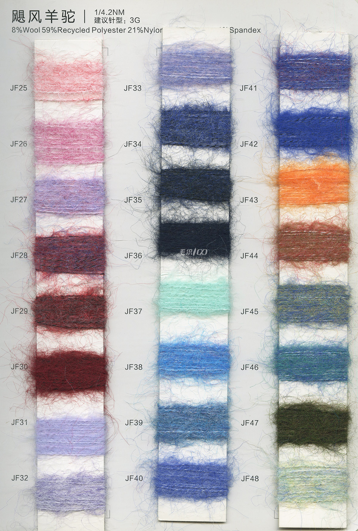 包芯紗系類;馬海毛系類;各類花式紗 兔絨包芯紗、七彩花式包芯紗、兔毛包芯紗、巴素蘭羊毛、長纖仿羊絨、有色精梳棉、膨體真三七、有色雙曲、絲光美麗奴羊毛、高檔半精兔絨、高端山羊絨