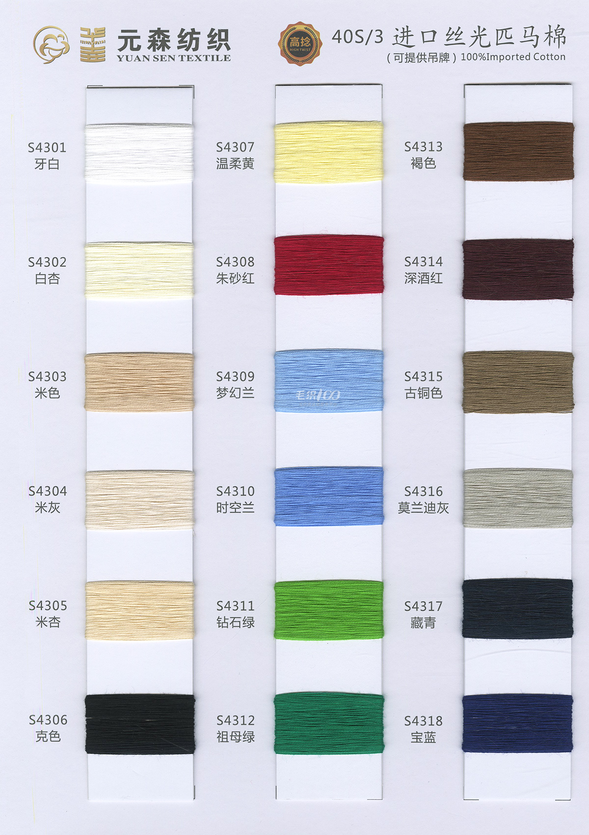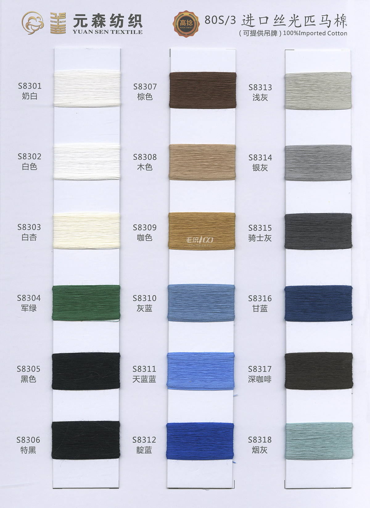 絲光燒毛棉、絲光匹馬棉、絲光燒毛棉帶子紗、長絨棉、新疆棉、日本和紙、亞麻羊毛、羊絨混紡等。
