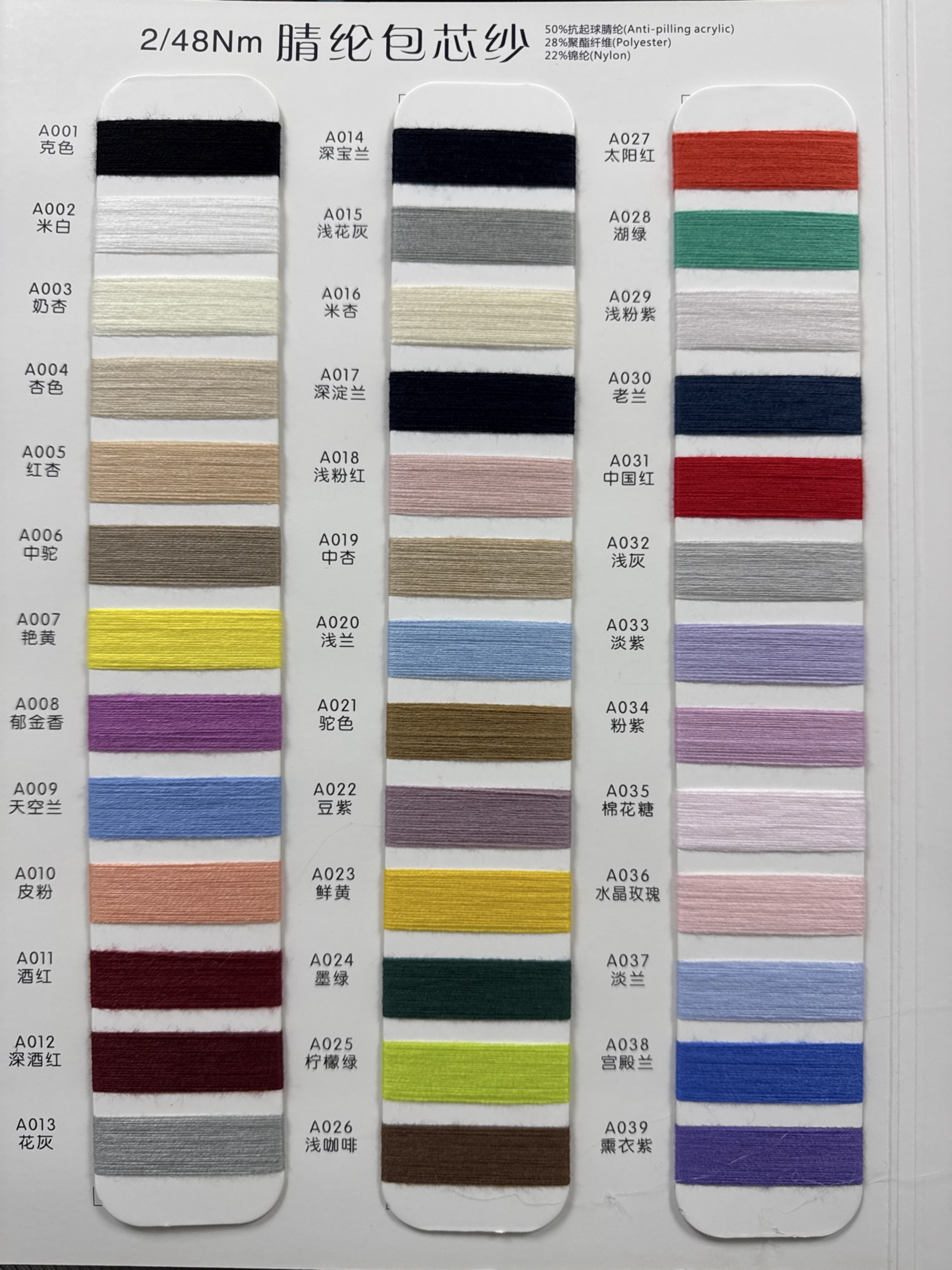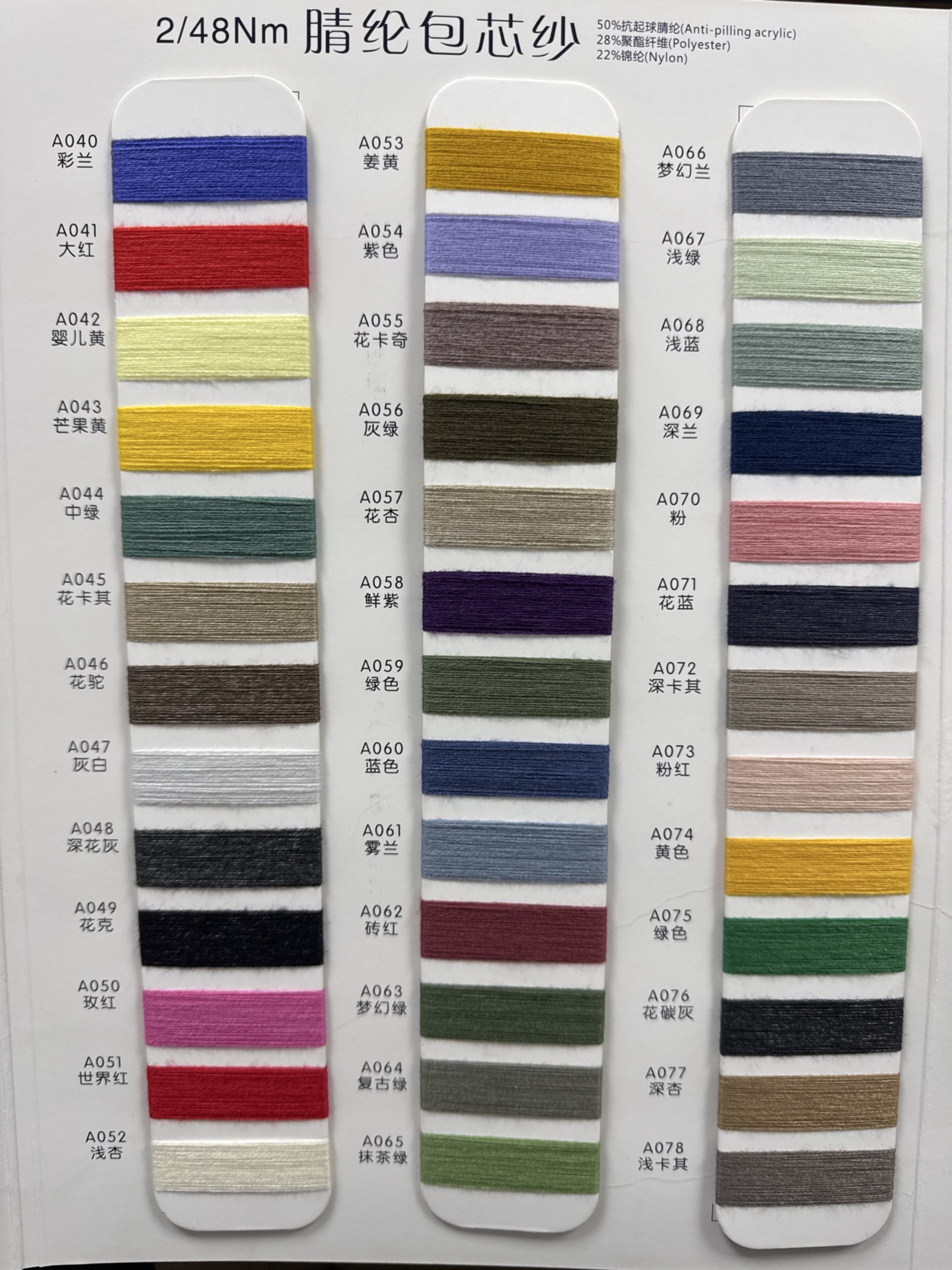 50%抗起球腈綸28%聚酯纖維22%錦綸