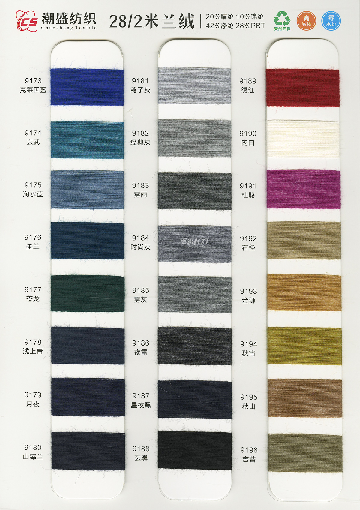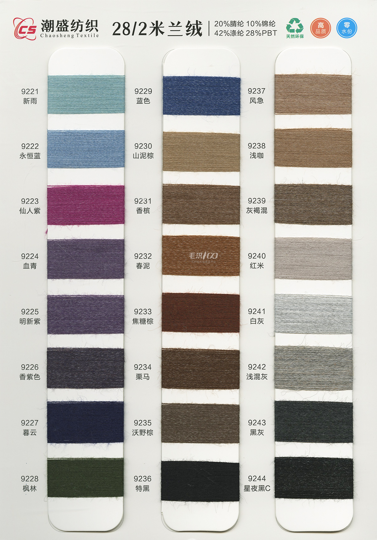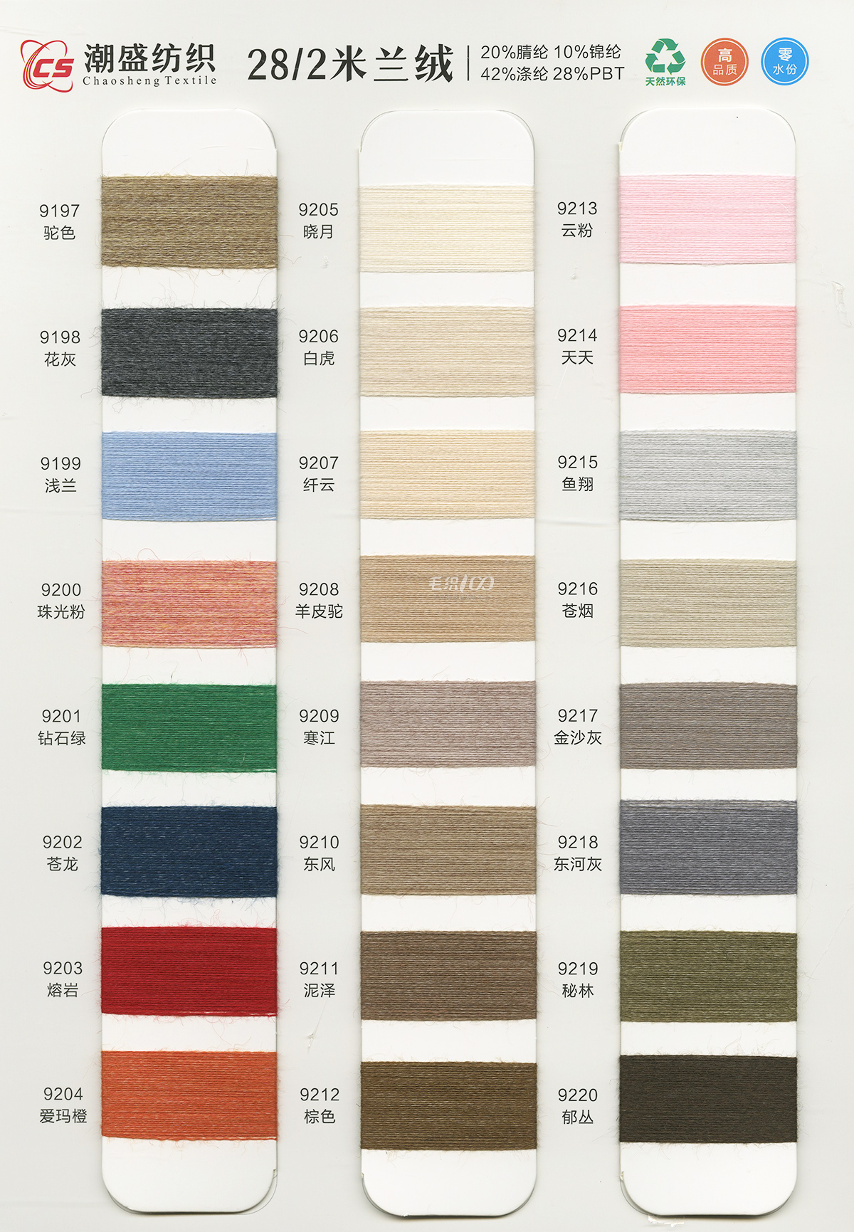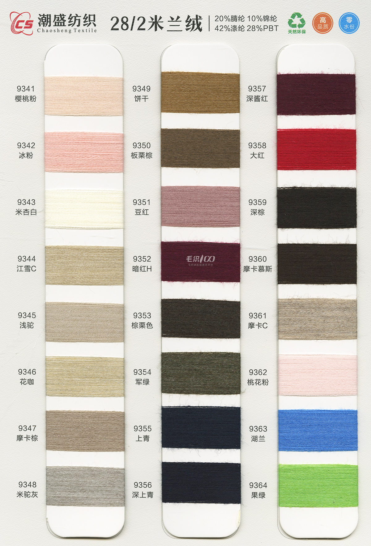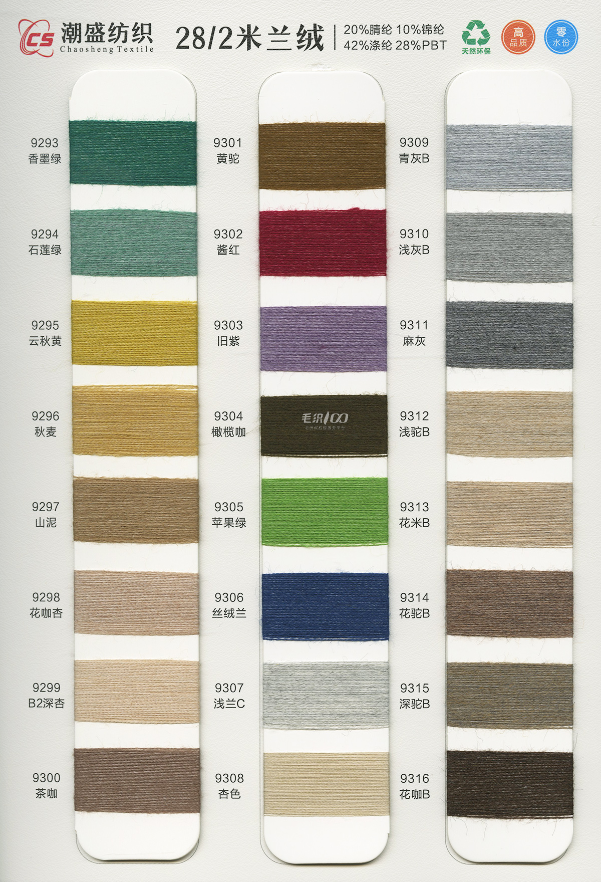 20%腈綸(acrylic)10%錦綸(polyamide)42%滌綸(polyester)28%PBT