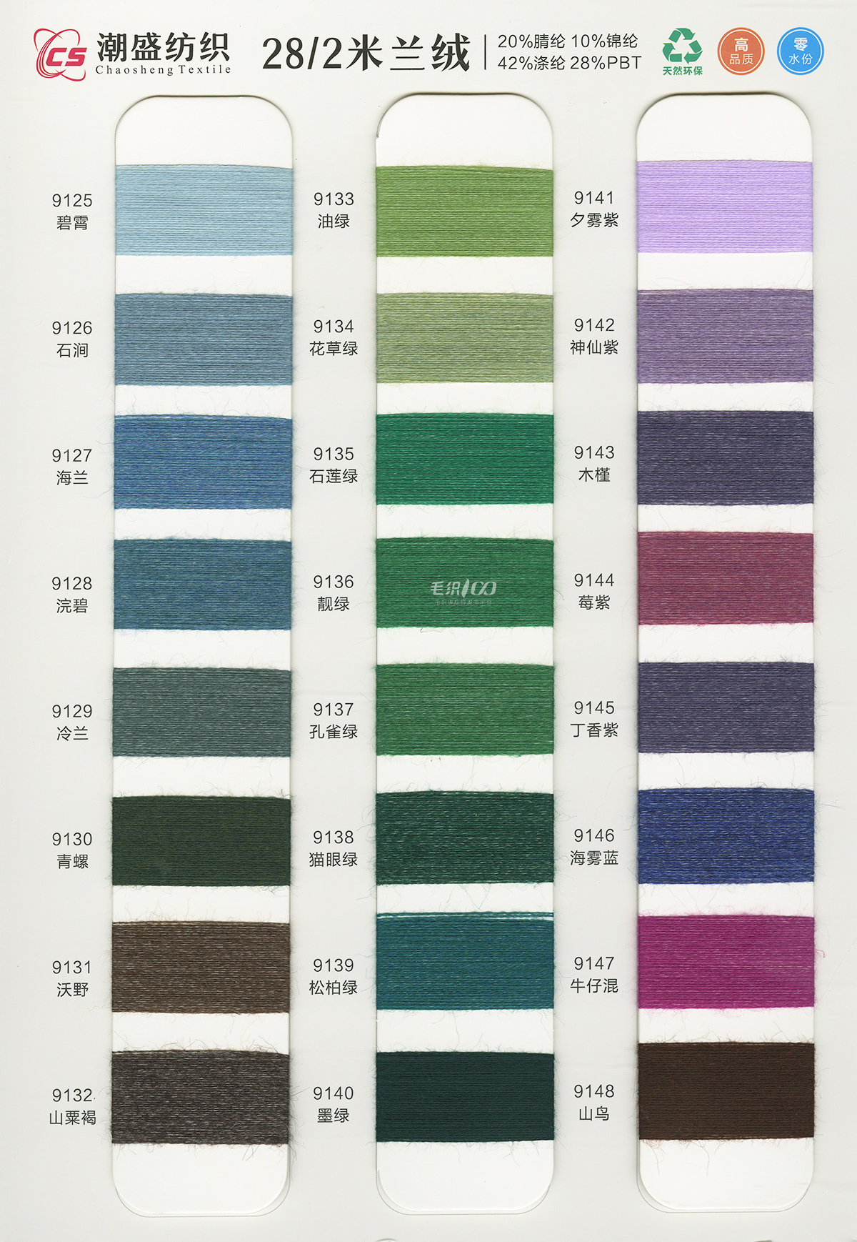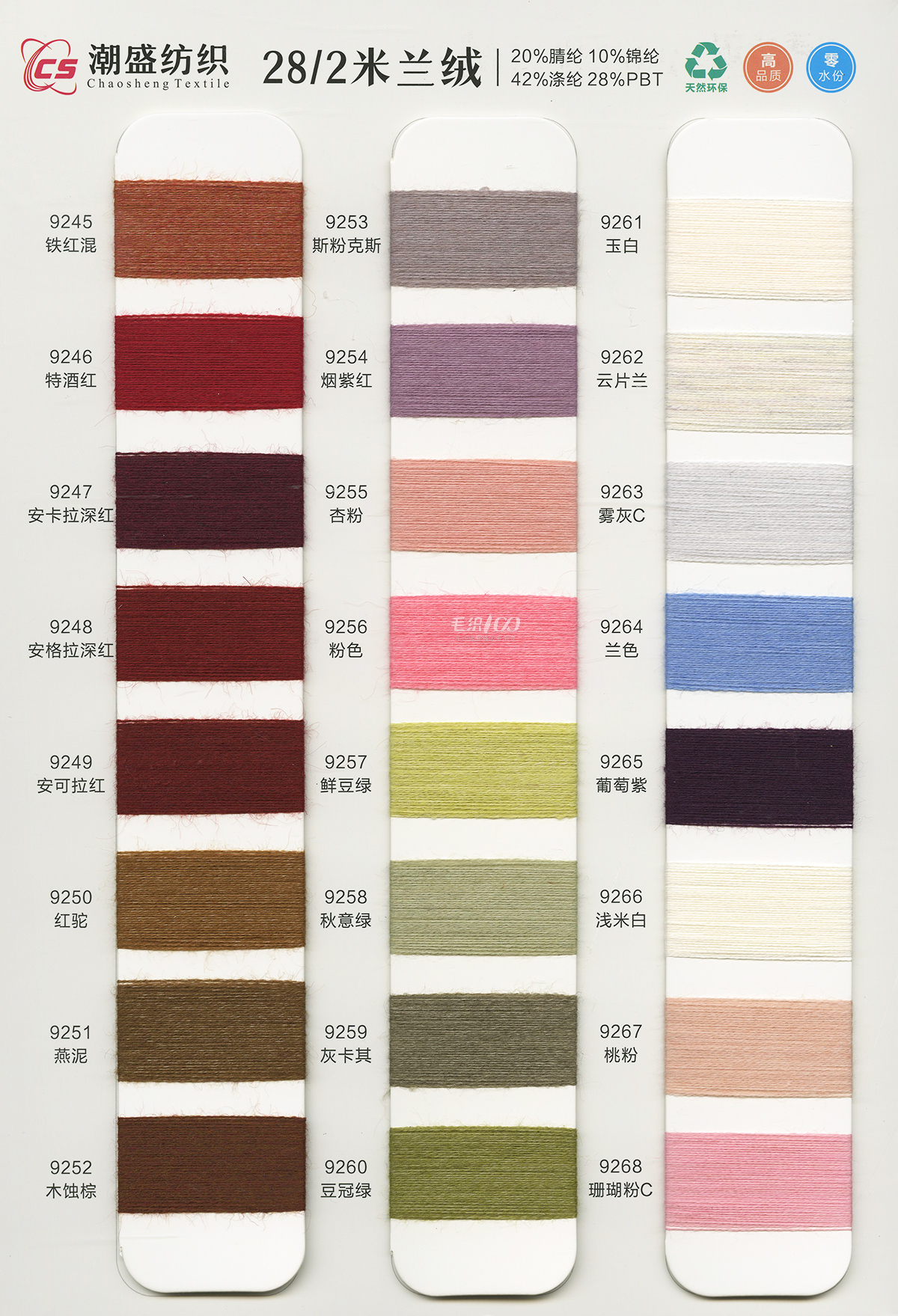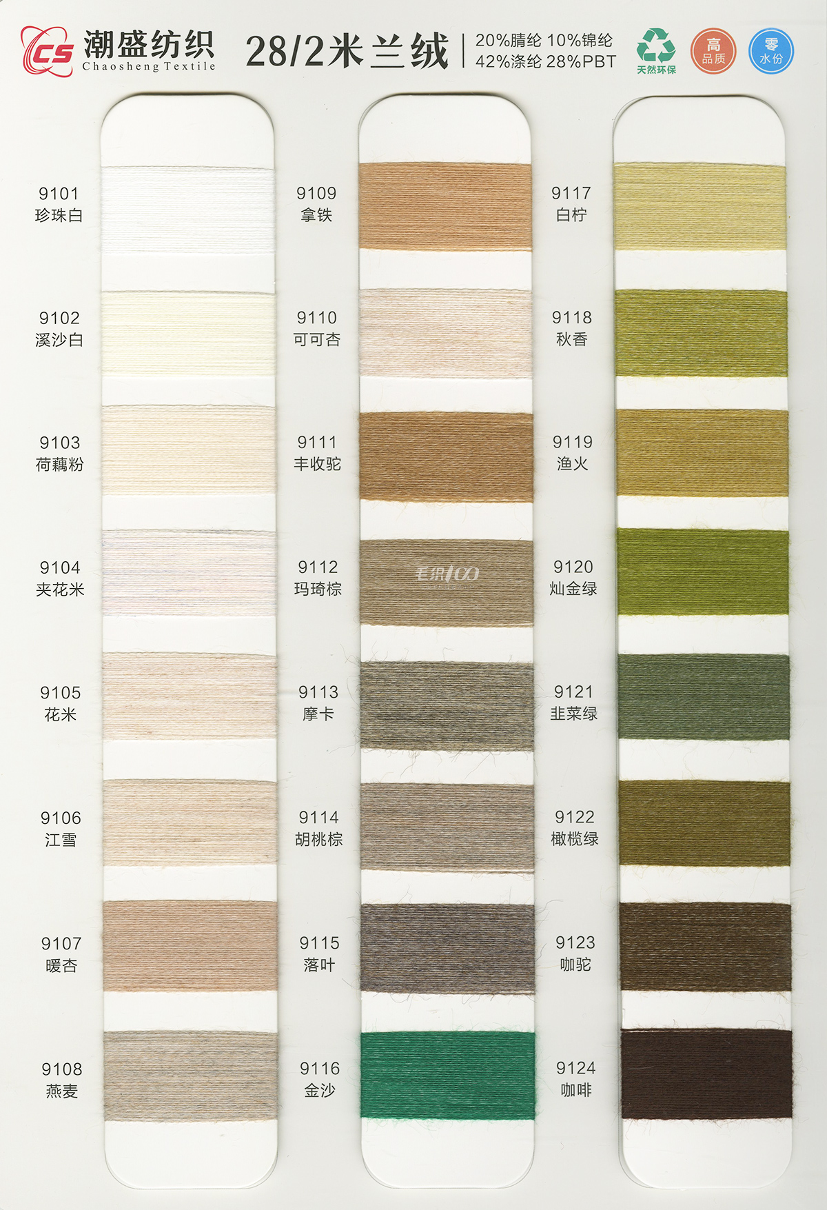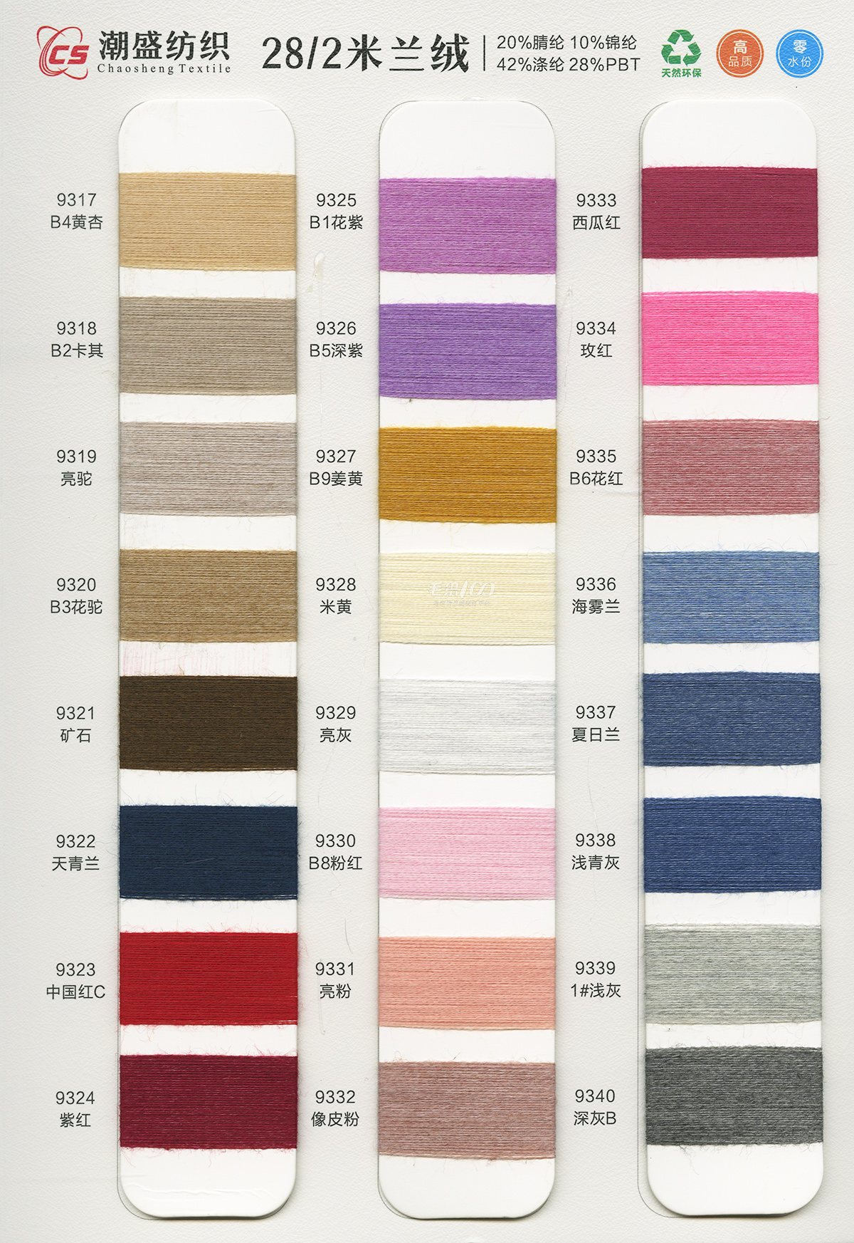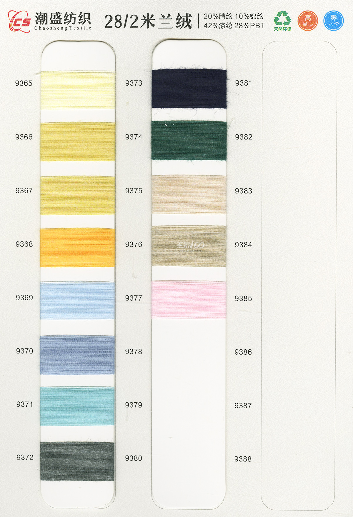 20%腈綸(acrylic)10%錦綸(polyamide)42%滌綸(polyester)28%PBT