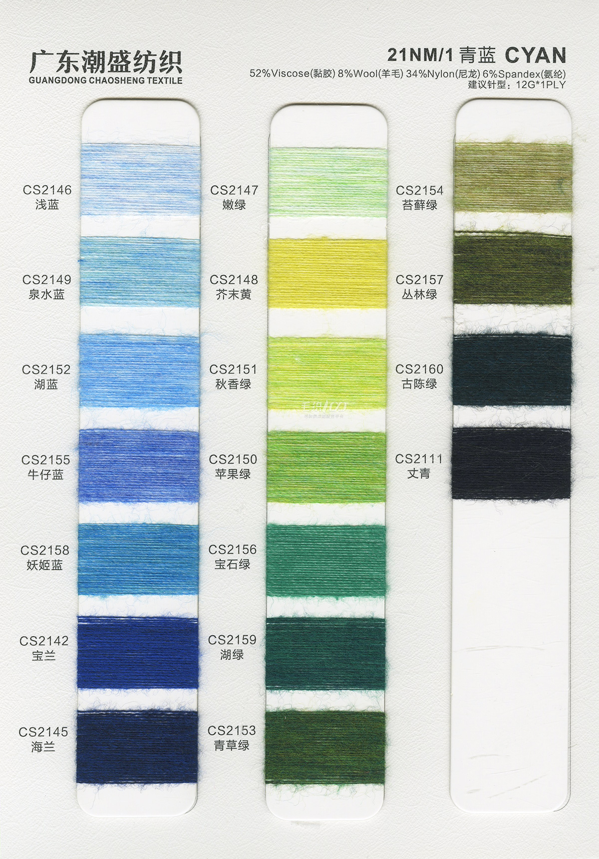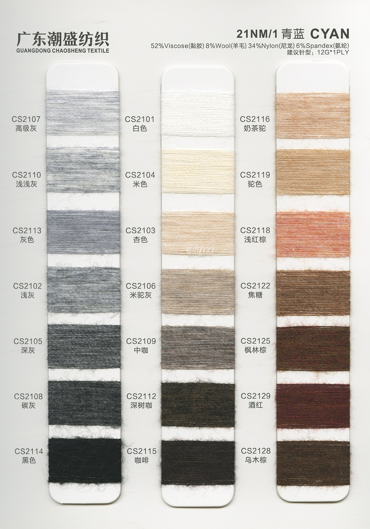 52%黏膠(viscose)8%羊毛(wool)34%尼龍(nylon)6%氨綸(spandex)