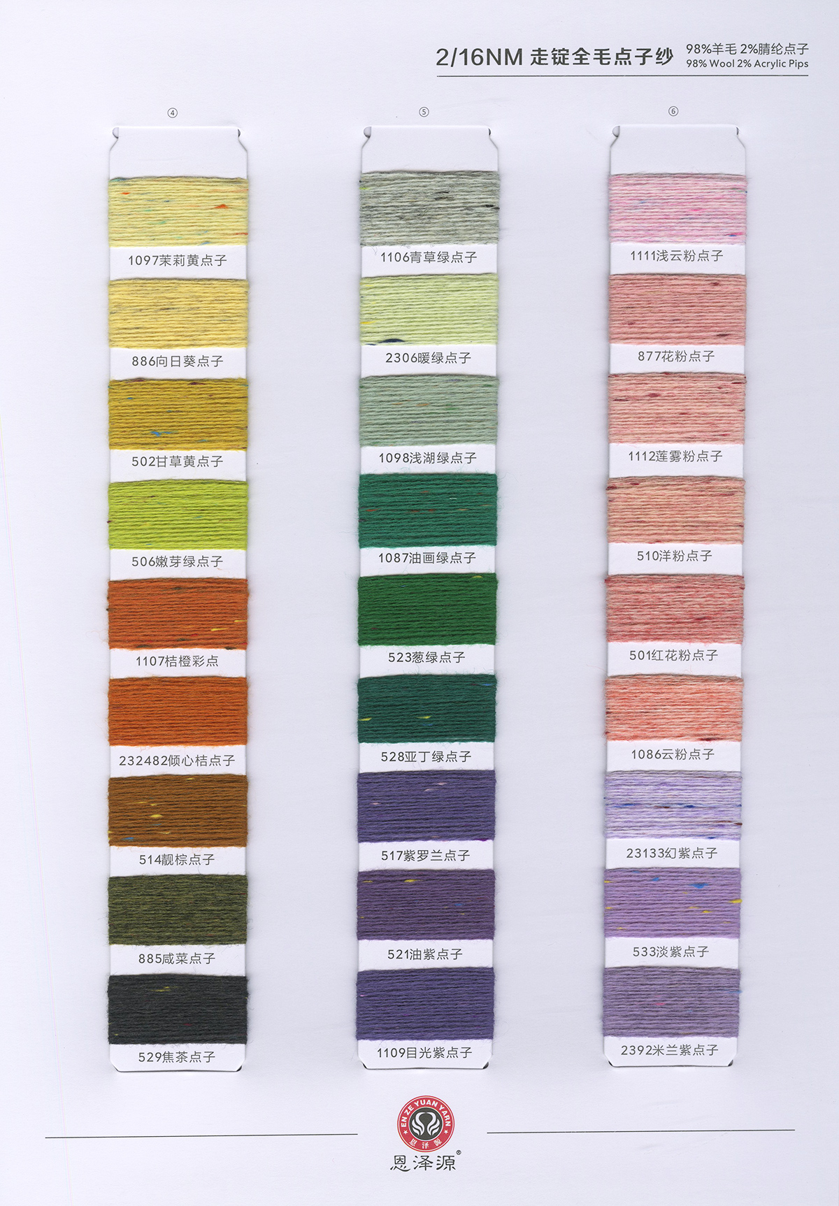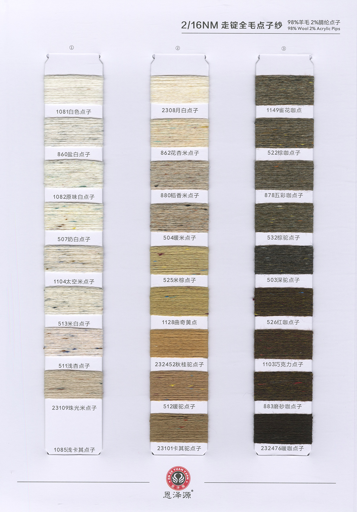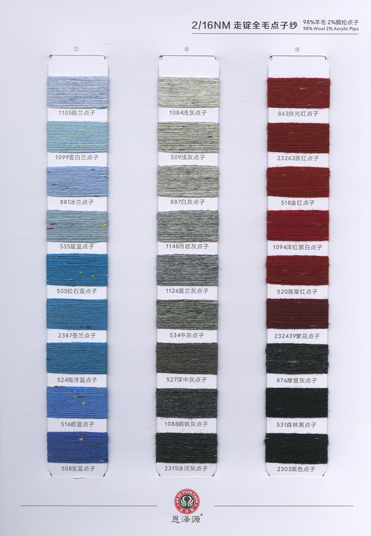 1、26支100%全羊毛,2/16支100%全羊毛 16支點子紗 2、2/26支 粗紡50羊毛 30羊毛 3、2/24支 2/16支 精品浣熊絨 4、26支 10羊絨,30羊絨 5、各種比例馬海毛,羊駝毛 6、3/70支 10%羊毛90%天絲,絹絲羊毛