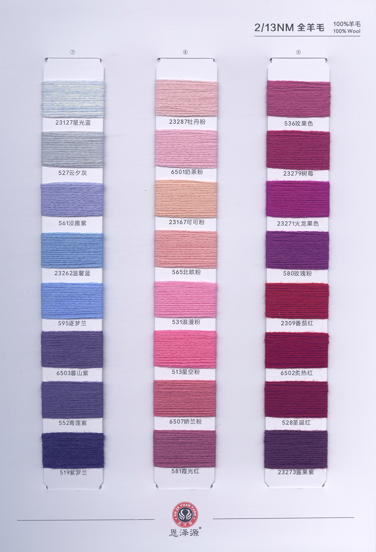 1、26支100%全羊毛,2/16支100%全羊毛 16支點子紗 2、2/26支 粗紡50羊毛 30羊毛 3、2/24支 2/16支 精品浣熊絨 4、26支 10羊絨,30羊絨 5、各種比例馬海毛,羊駝毛 6、3/70支 10%羊毛90%天絲,絹絲羊毛