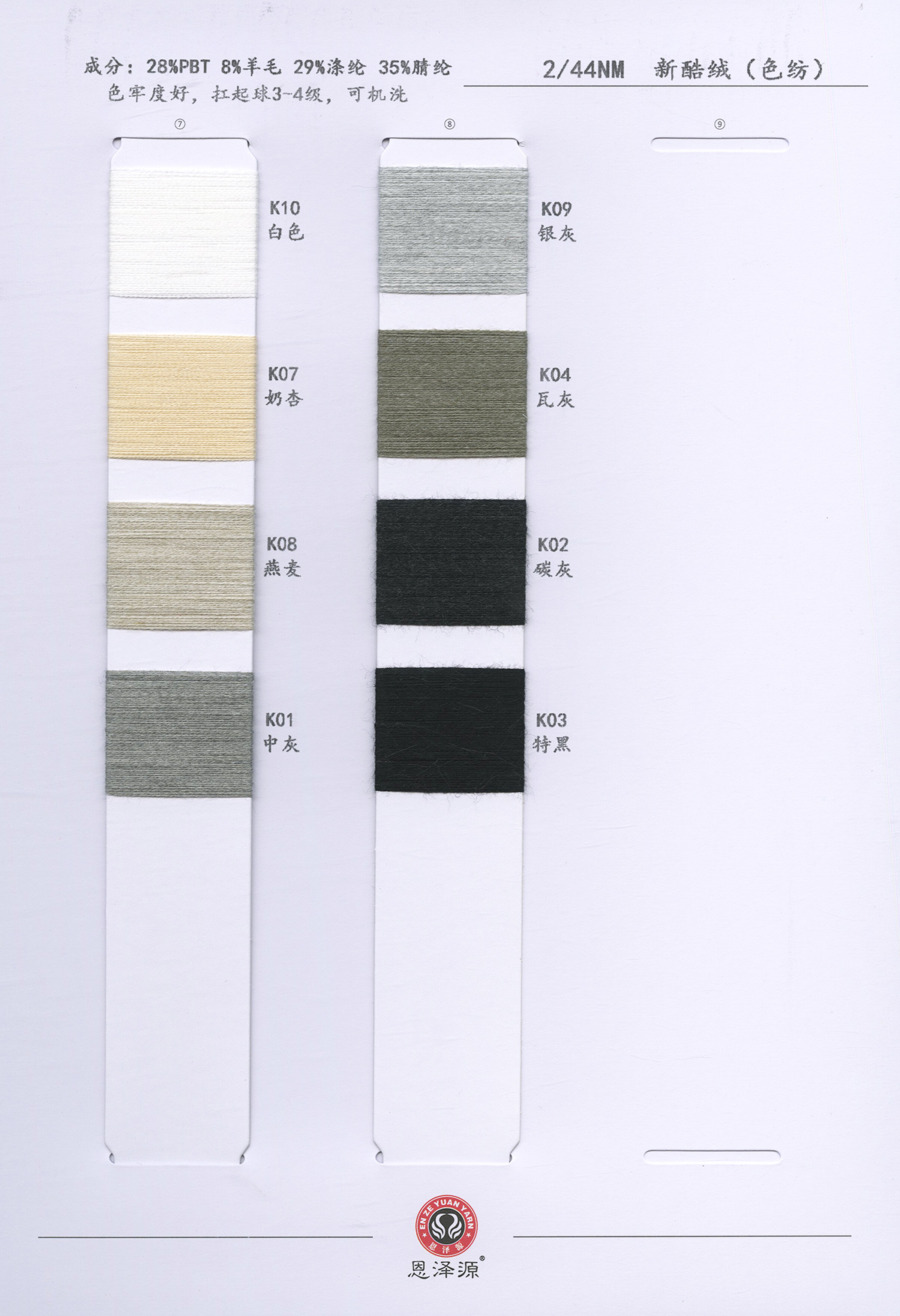 1、26支100%全羊毛,2/16支100%全羊毛 16支點子紗 2、2/26支 粗紡50羊毛 30羊毛 3、2/24支 2/16支 精品浣熊絨 4、26支 10羊絨,30羊絨 5、各種比例馬海毛,羊駝毛 6、3/70支 10%羊毛90%天絲,絹絲羊毛