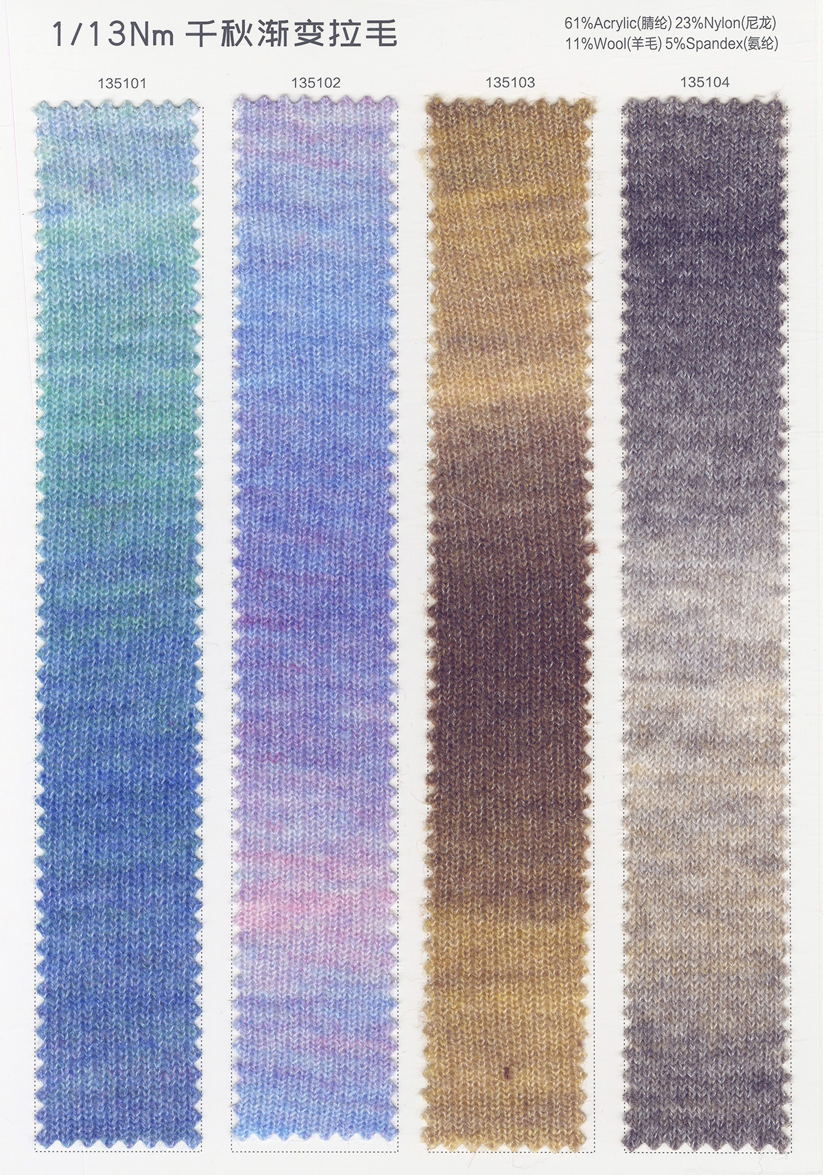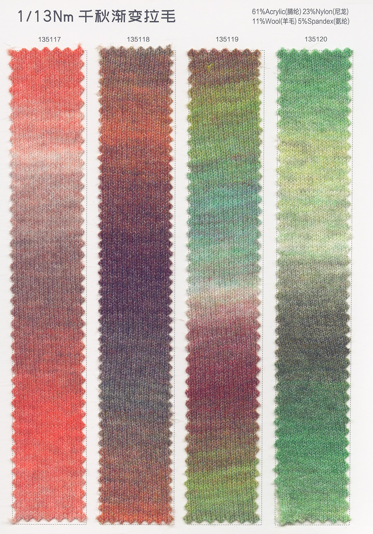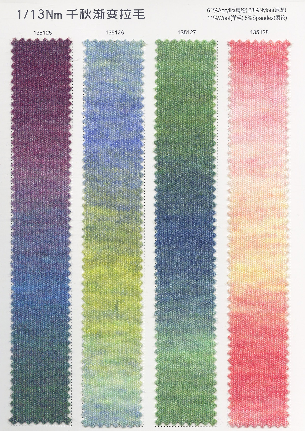 主營:浣熊,牦牛,羊駝,馬海,圈圈,羊毛混紡,磨毛紗,噴毛紗 ,和紙紗,天絲,亞麻,彩點系列,混紡紗,花式特種紗系列。