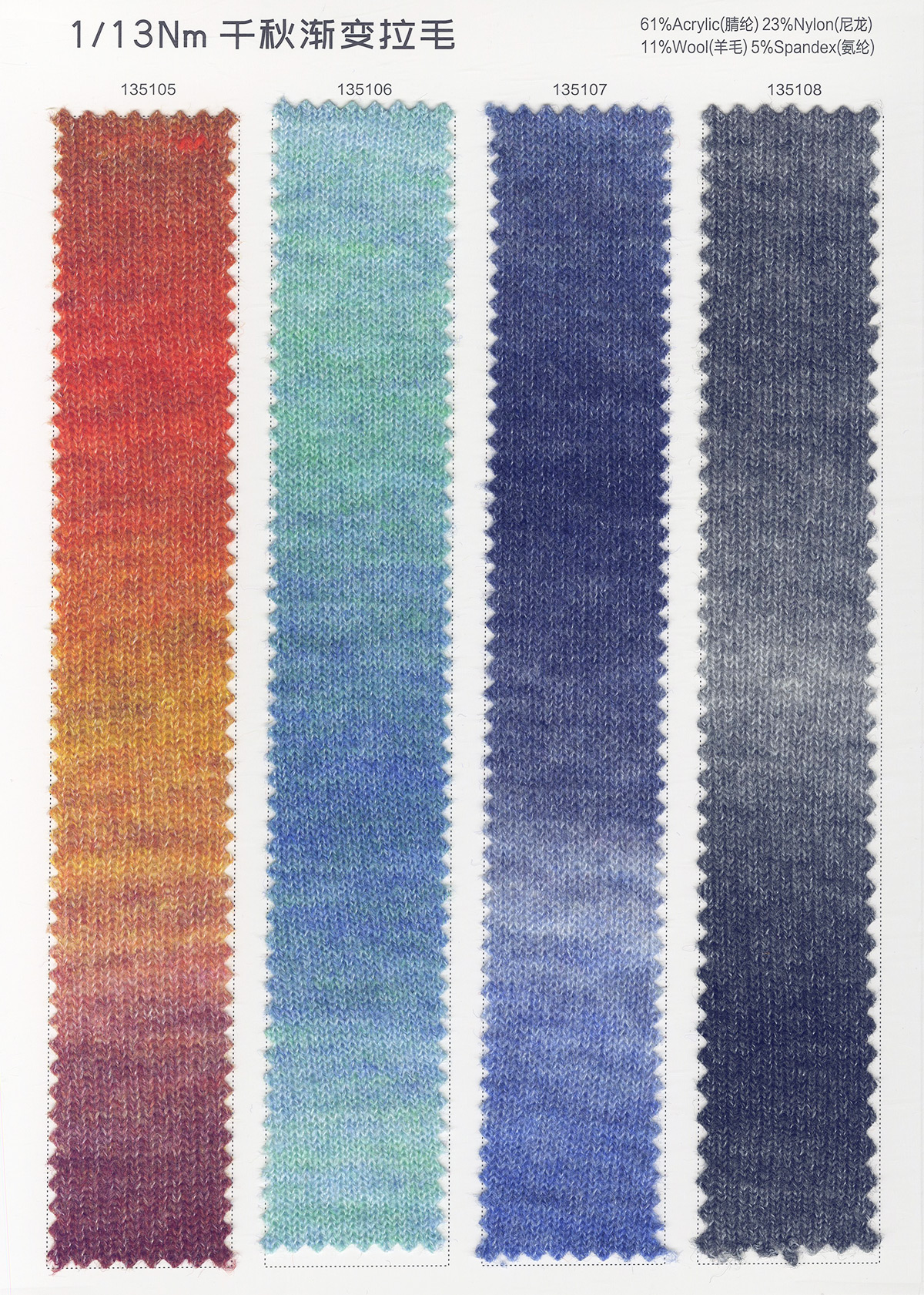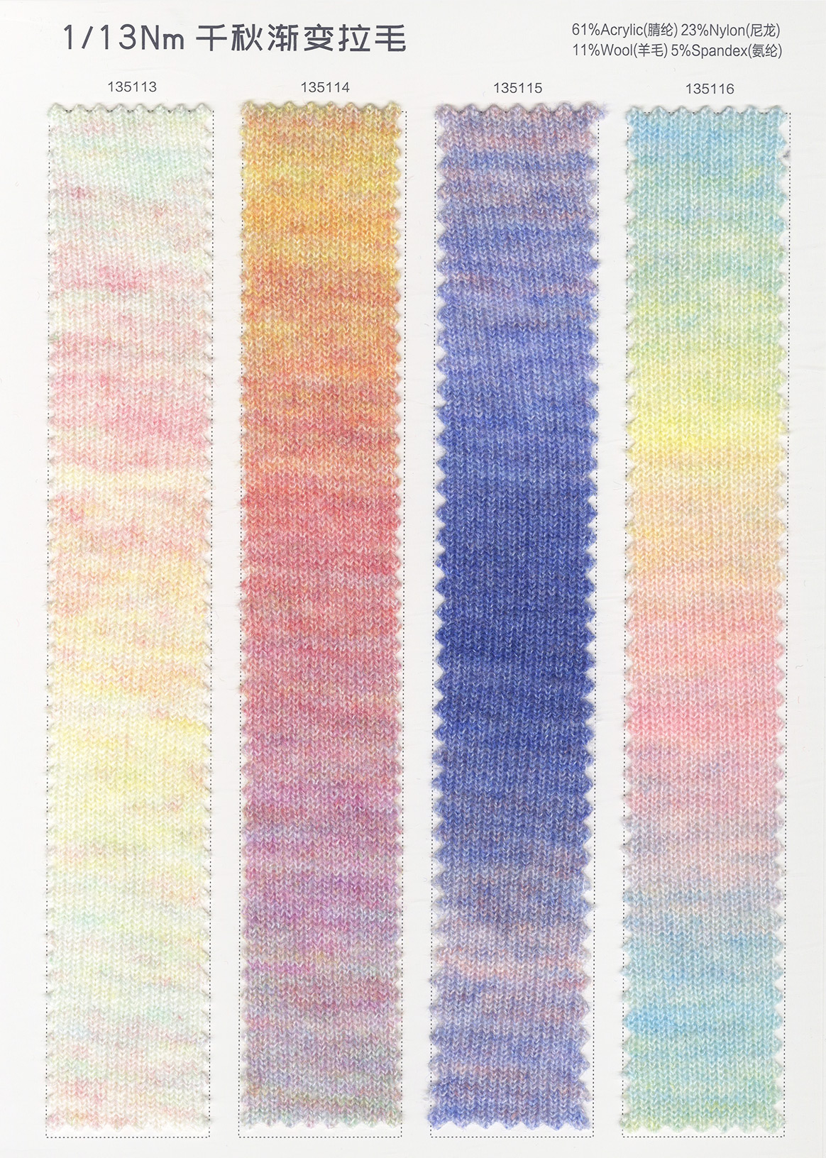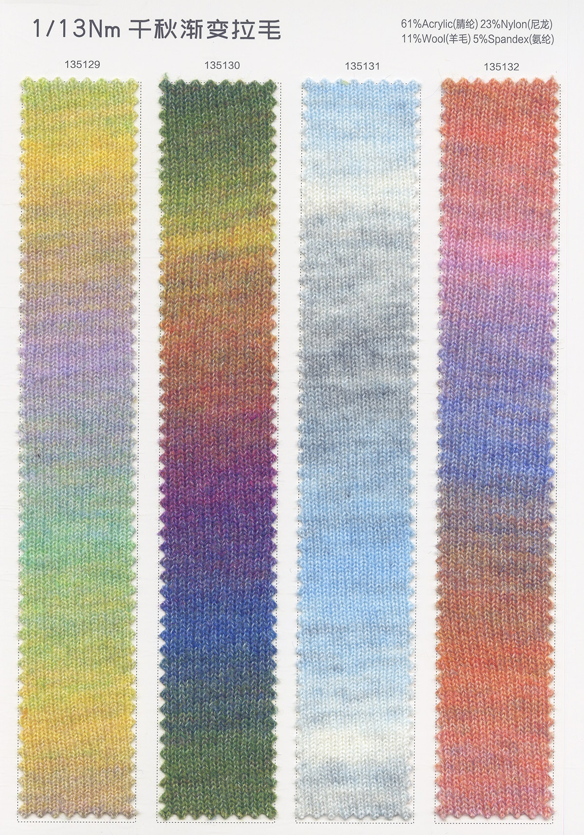 主營:浣熊,牦牛,羊駝,馬海,圈圈,羊毛混紡,磨毛紗,噴毛紗 ,和紙紗,天絲,亞麻,彩點系列,混紡紗,花式特種紗系列。