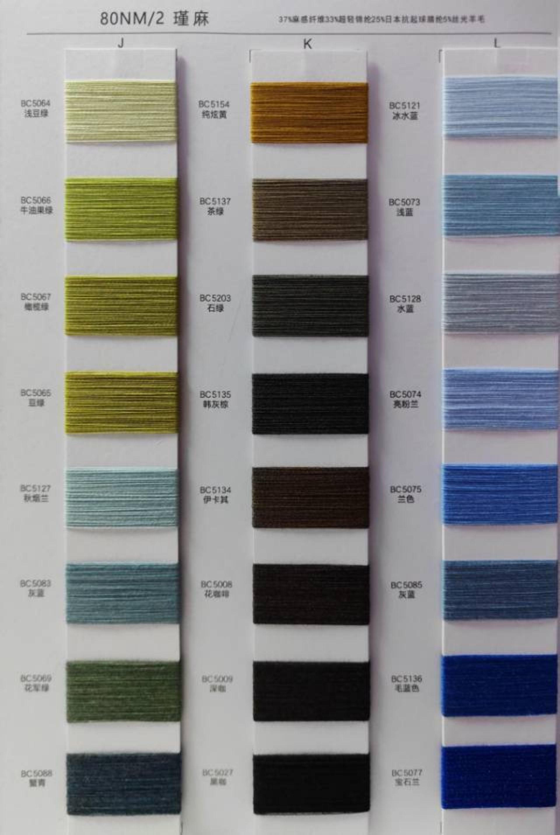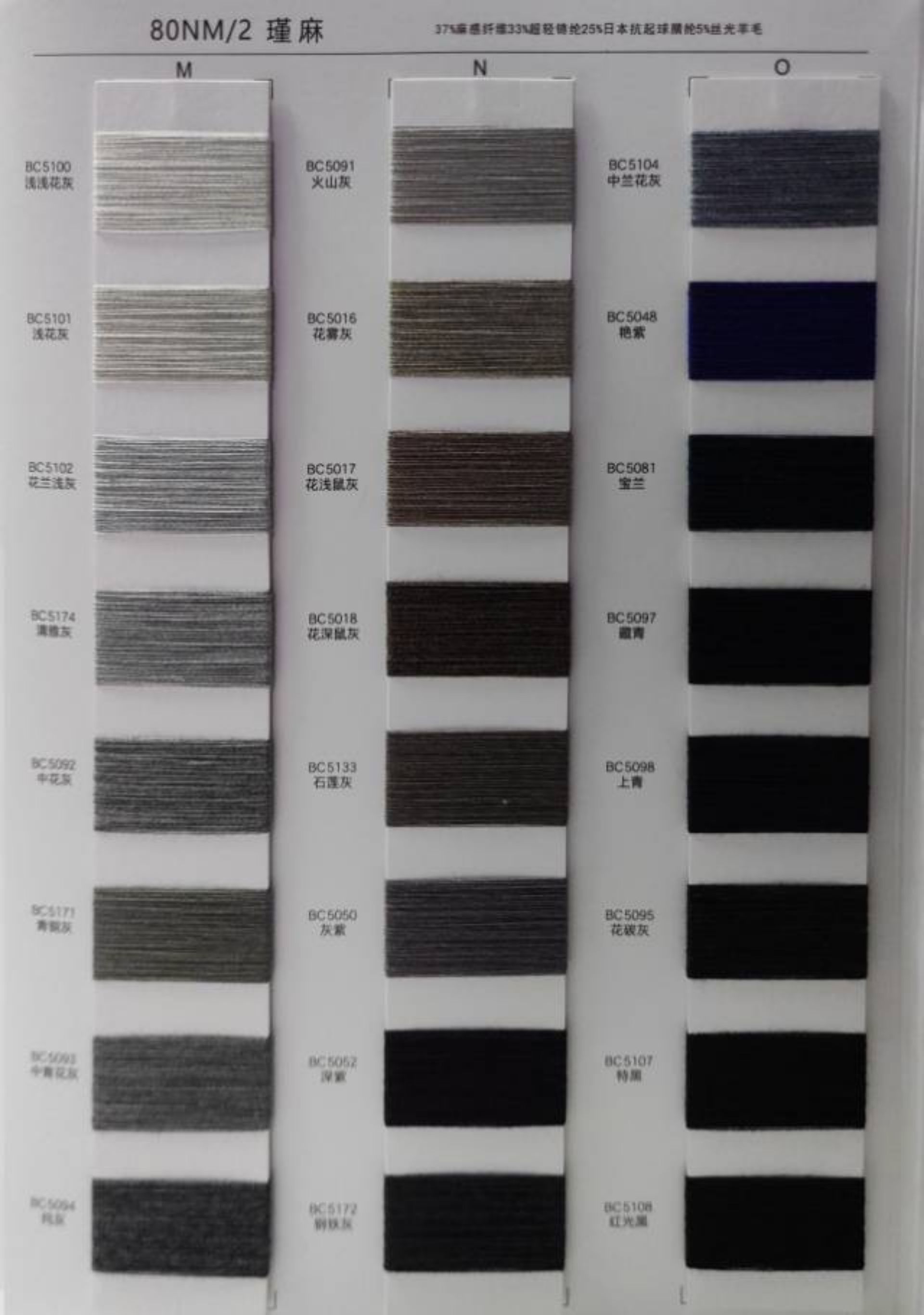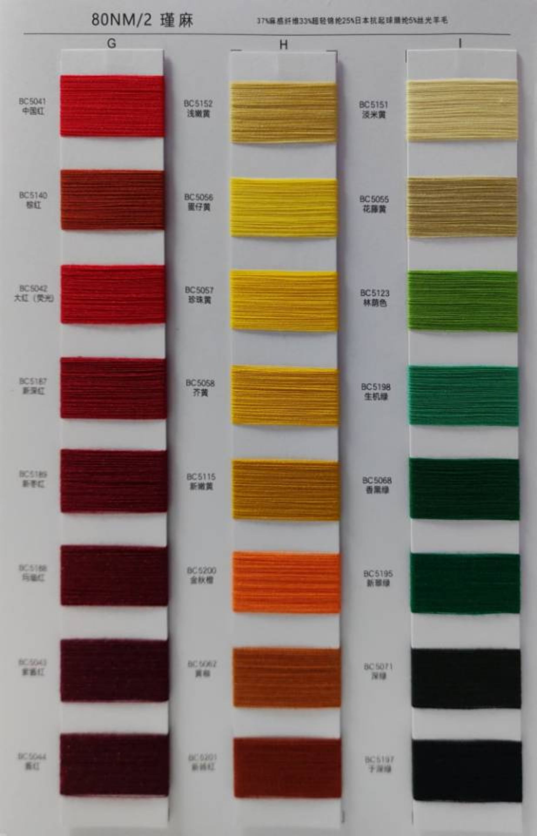 37%麻感纖維33%超輕錦綸25%日本抗起球腈綸5%絲光羊毛