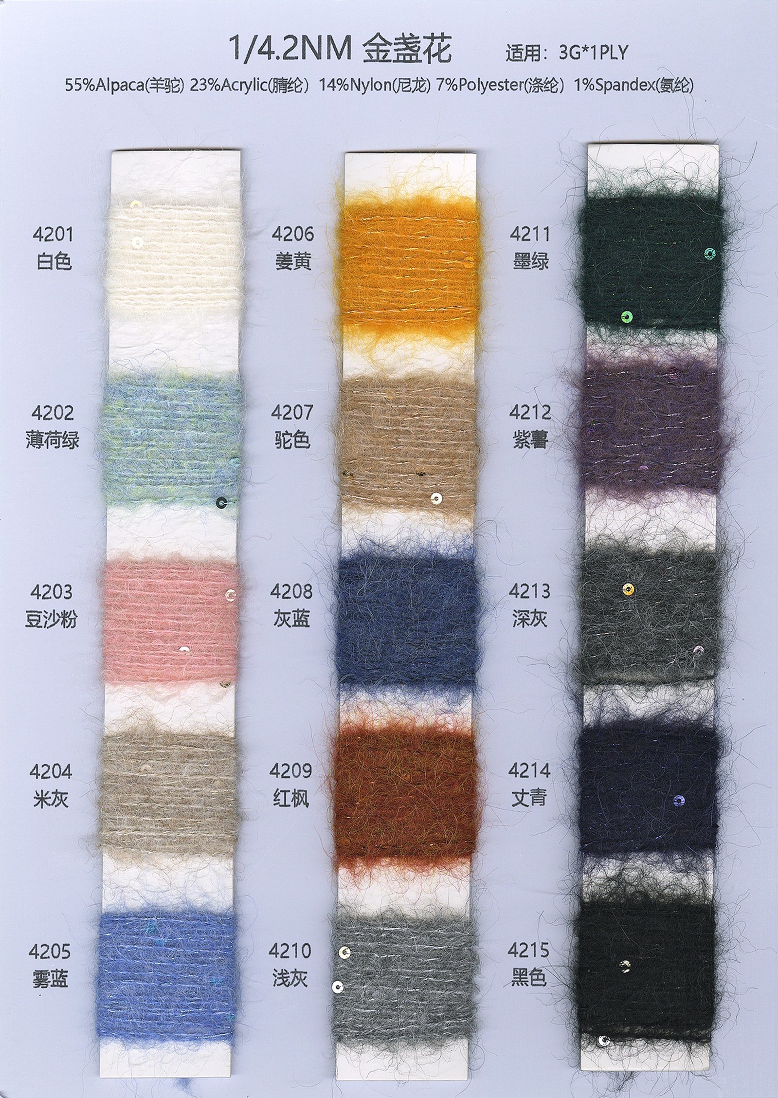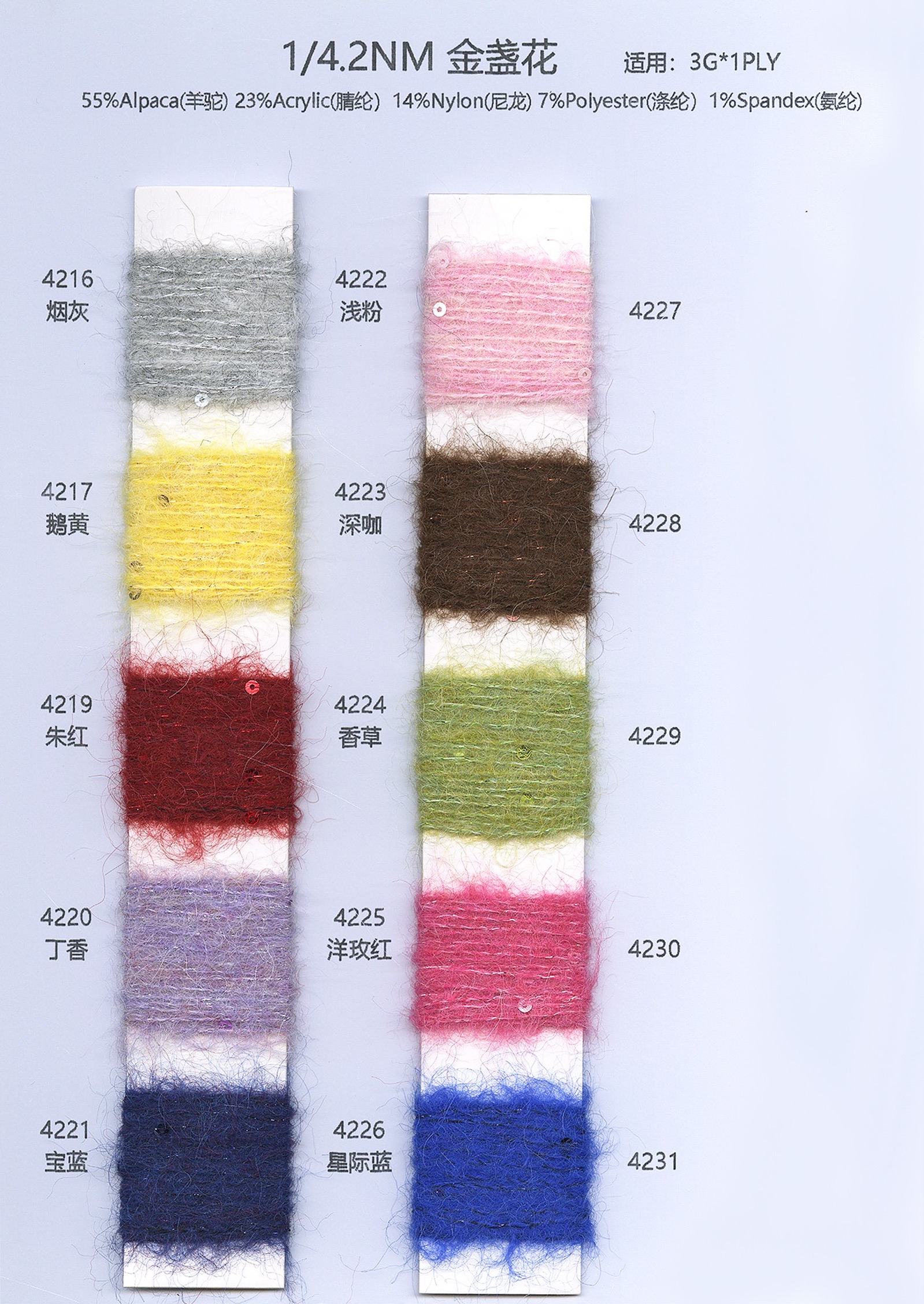 羊駝毛、馬海毛等各種花式紗