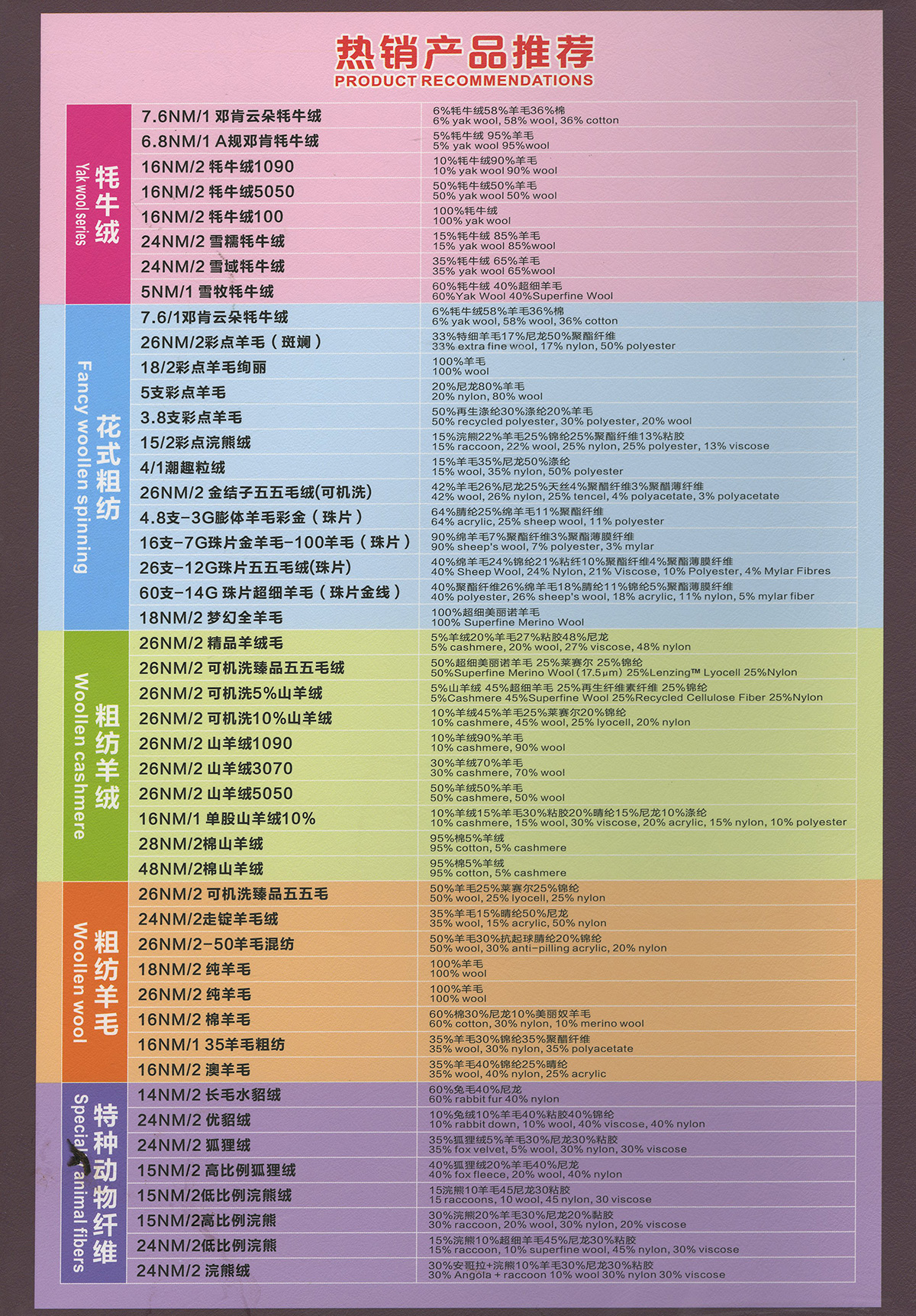珠片彩點新型花式紗線 原創科技紗線 走錠紡紗系列 臻品五五毛絨 走錠澳毛絨 粗紡美麗奴純羊毛 精紡毛晴系列 粗紡羊毛 羊絨 特種動物纖維系列: