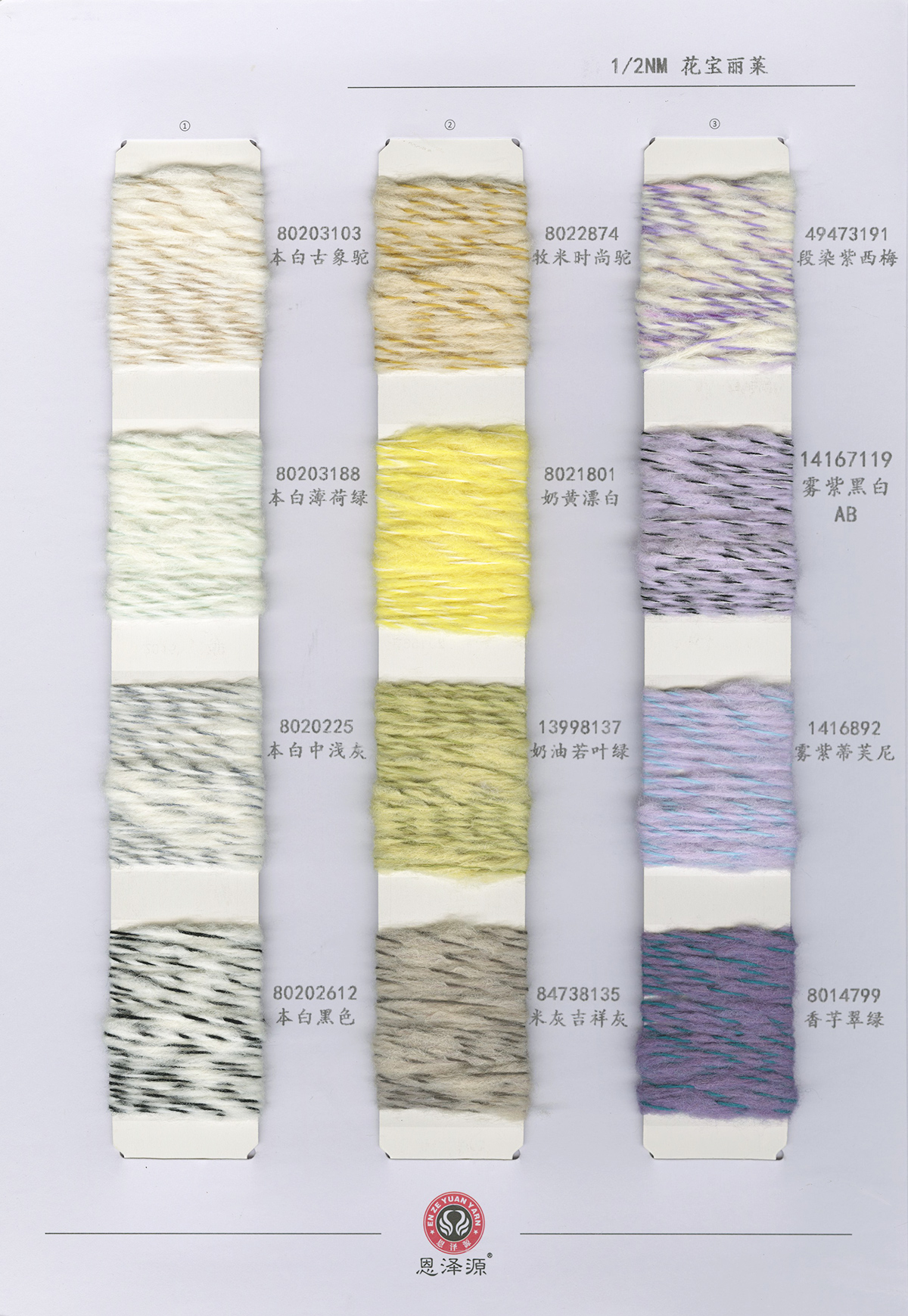 1、26支100%全羊毛,2/16支100%全羊毛 16支點子紗 2、2/26支 粗紡50羊毛 30羊毛 3、2/24支 2/16支 精品浣熊絨 4、26支 10羊絨,30羊絨 5、各種比例馬海毛,羊駝毛 6、3/70支 10%羊毛90%天絲,絹絲羊毛