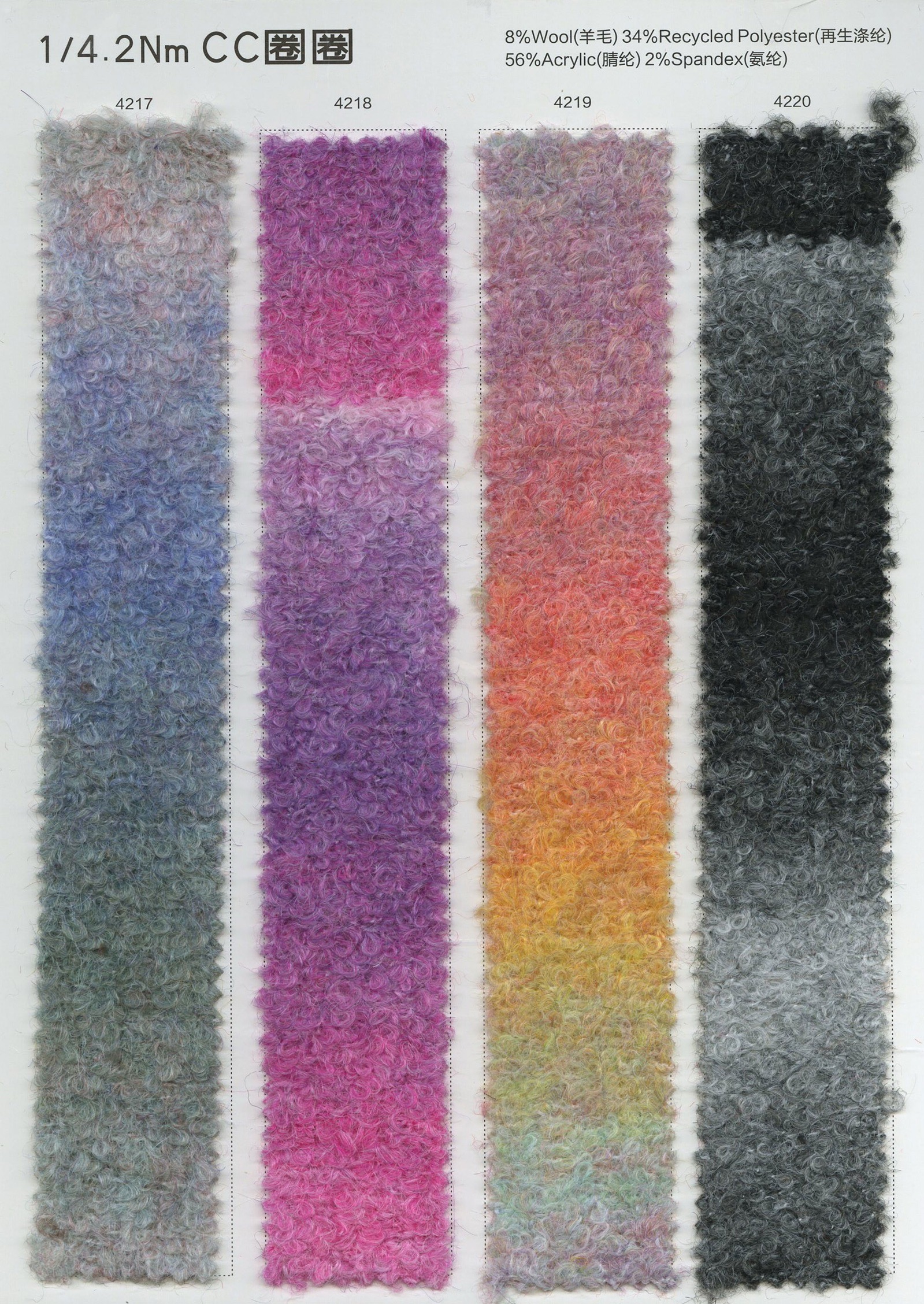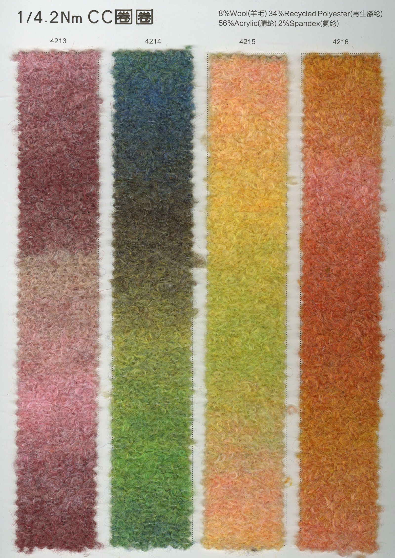 帶子紗,珠片紗,花式紗,特種紗,羊毛混紡,羊駝毛,馬海毛,浣熊絨,牦牛絨,段染系列。