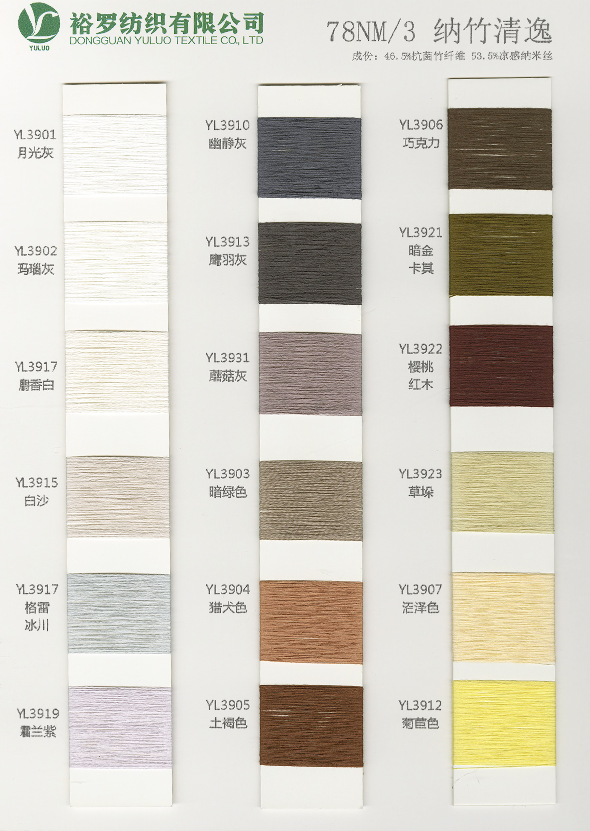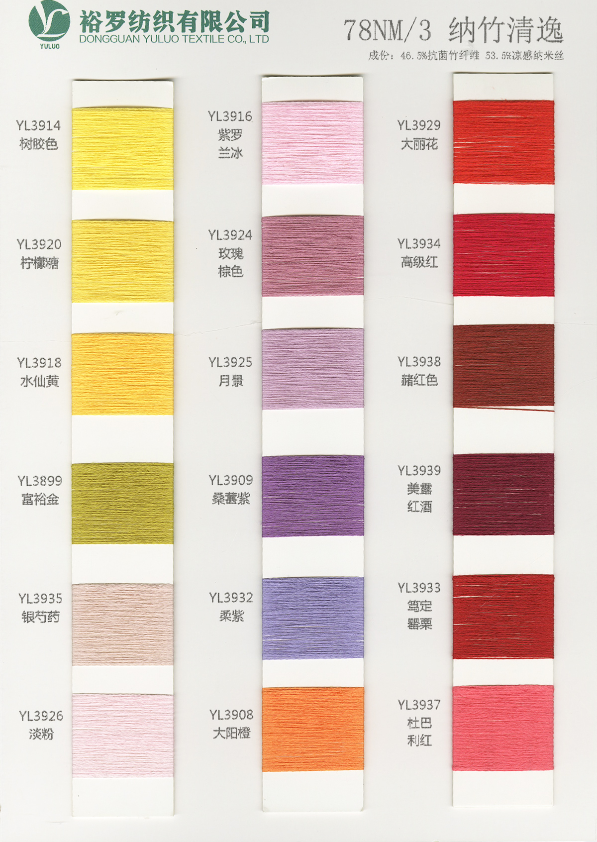 15NM/1長毛馬海毛、24S/1有色仿亞麻、5.8支不掉毛半邊絨、48/2 9羊毛混紡、26S/2 28S/2有色人造毛(仿羊絨)、有色兔絨包芯紗、有色高彈包芯紗、1.3CM仿貂毛、有色錦綸、高彈絲拉架、140D/70D有色仿錦綸、24S/2有色雙曲、16S/1冰爽絲、28NM/2抗起球莫代爾包芯紗、48NM/2抗起球羔羊絨混紡、45NM/2 6羊毛混紡紗、2CM仿貂毛
