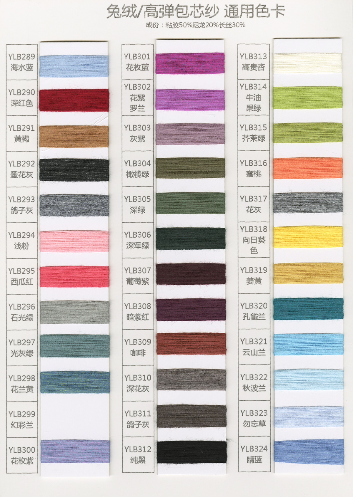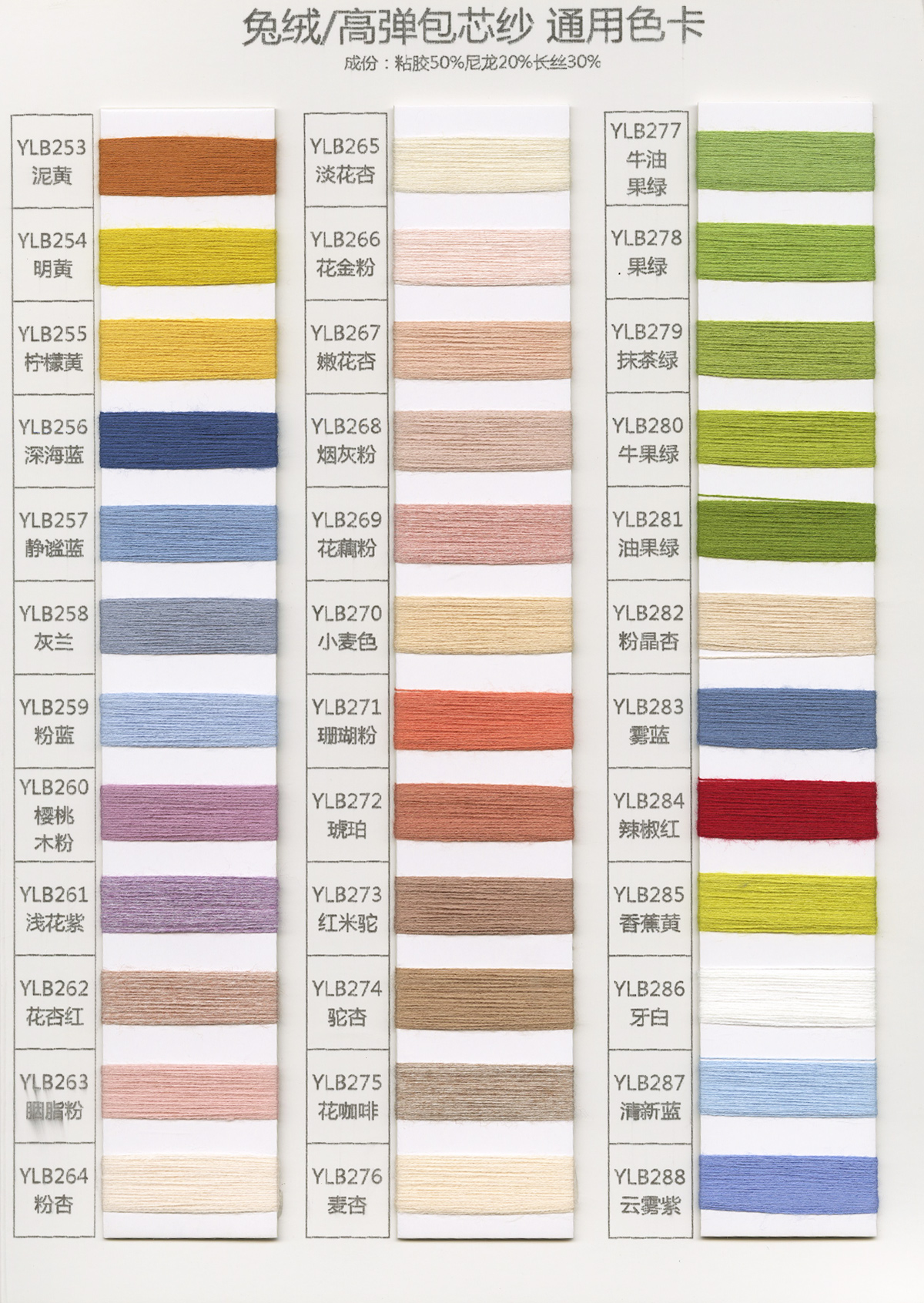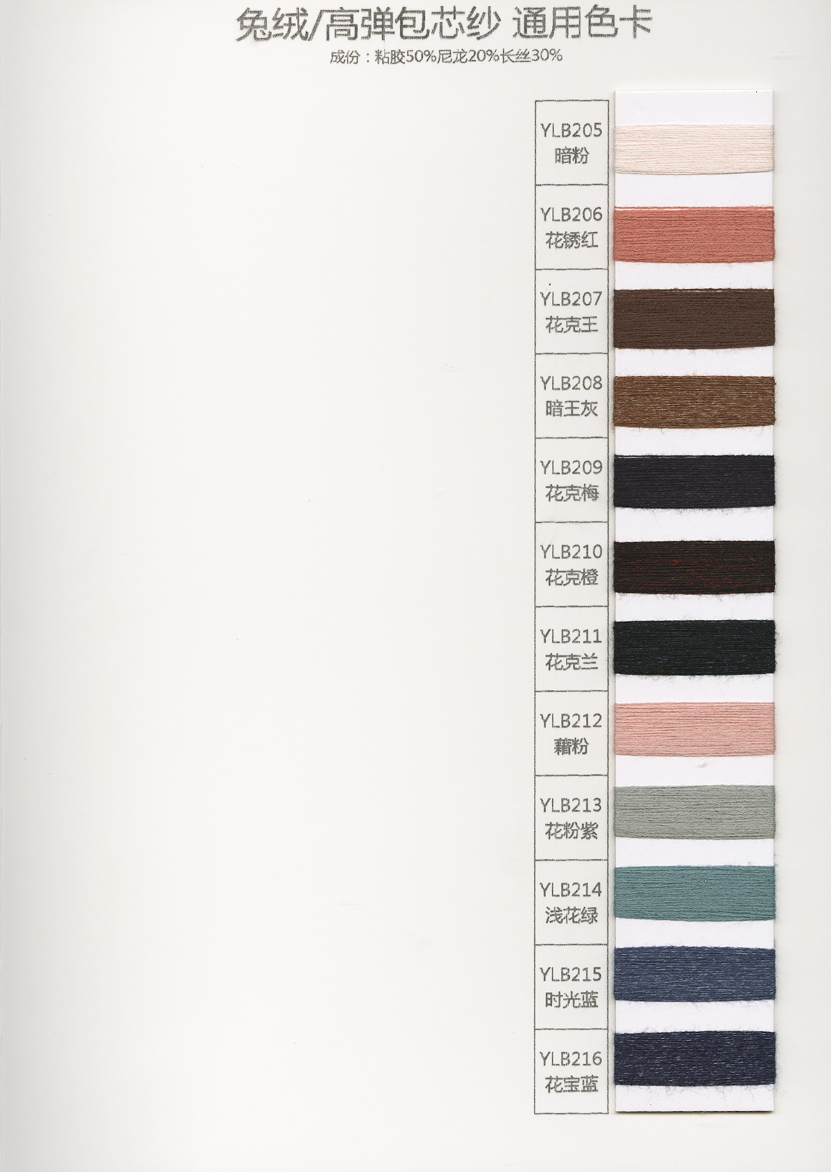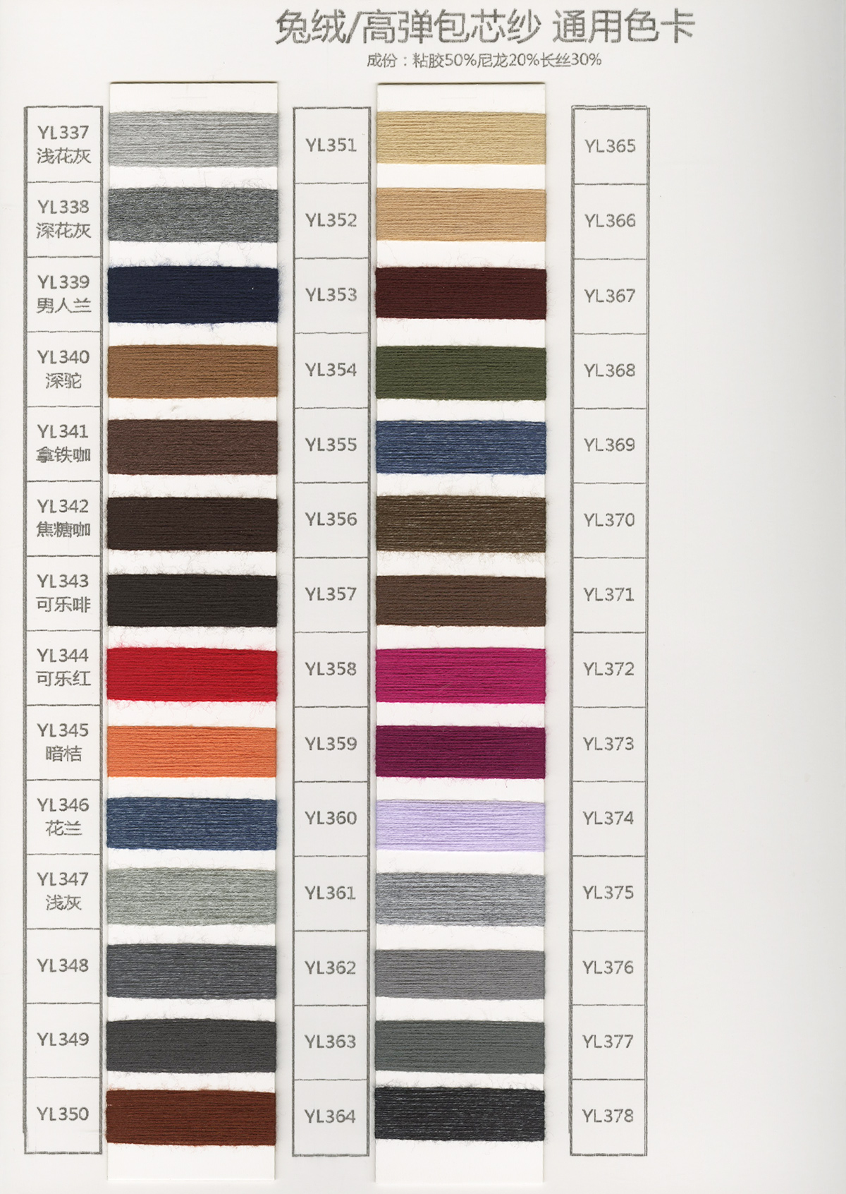 15NM/1長毛馬海毛、24S/1有色仿亞麻、5.8支不掉毛半邊絨、48/2 9羊毛混紡、26S/2 28S/2有色人造毛(仿羊絨)、有色兔絨包芯紗、有色高彈包芯紗、1.3CM仿貂毛、有色錦綸、高彈絲拉架、140D/70D有色仿錦綸、24S/2有色雙曲、16S/1冰爽絲、28NM/2抗起球莫代爾包芯紗、48NM/2抗起球羔羊絨混紡、45NM/2 6羊毛混紡紗、2CM仿貂毛