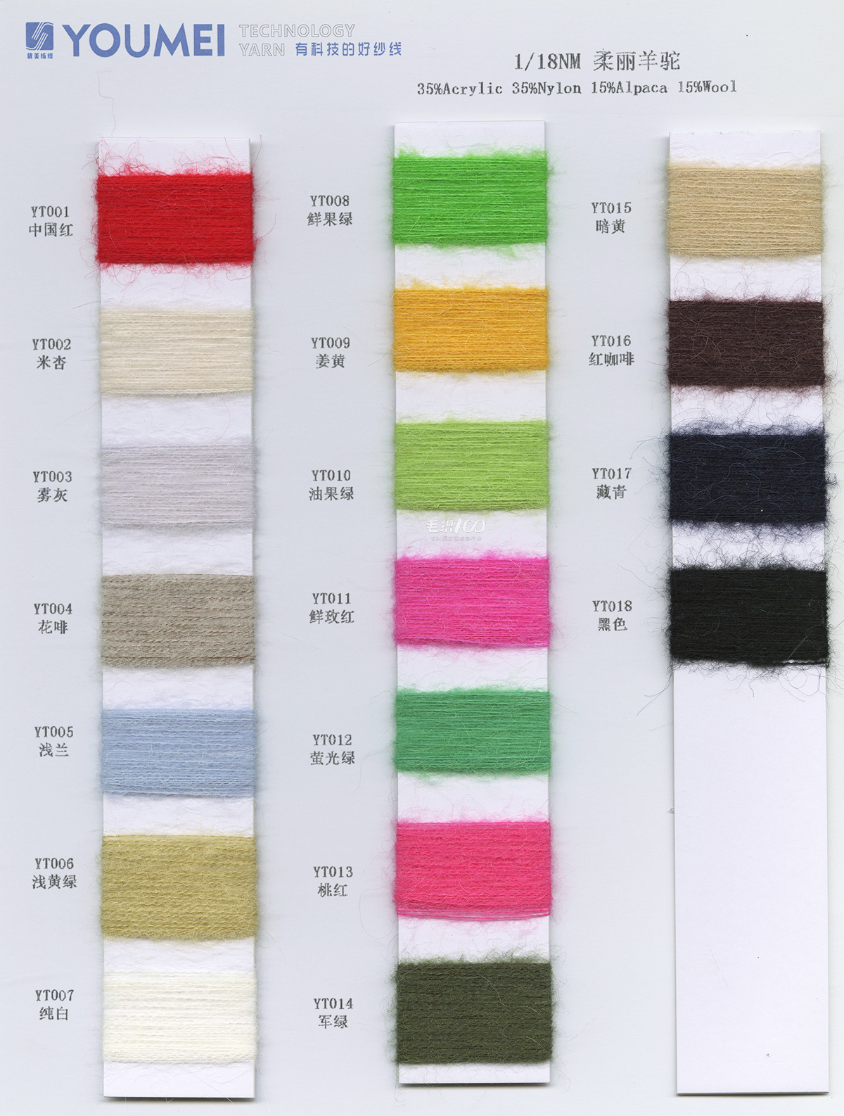 包纏紗系列(2.7NM、4.2NM4.5NM、5.2NM、5.8NM、7.5NM、15NM 19NM等不同材質的包纏紗),仿麻圈圈紗、賽雅絲(醋酸+莫代爾)、絲雅竹節、親膚絨、英拉絨、米拉絨、羊毛絨、駱駝絨、、羊駝毛、BB 考拉絨、閃光馬海毛等。