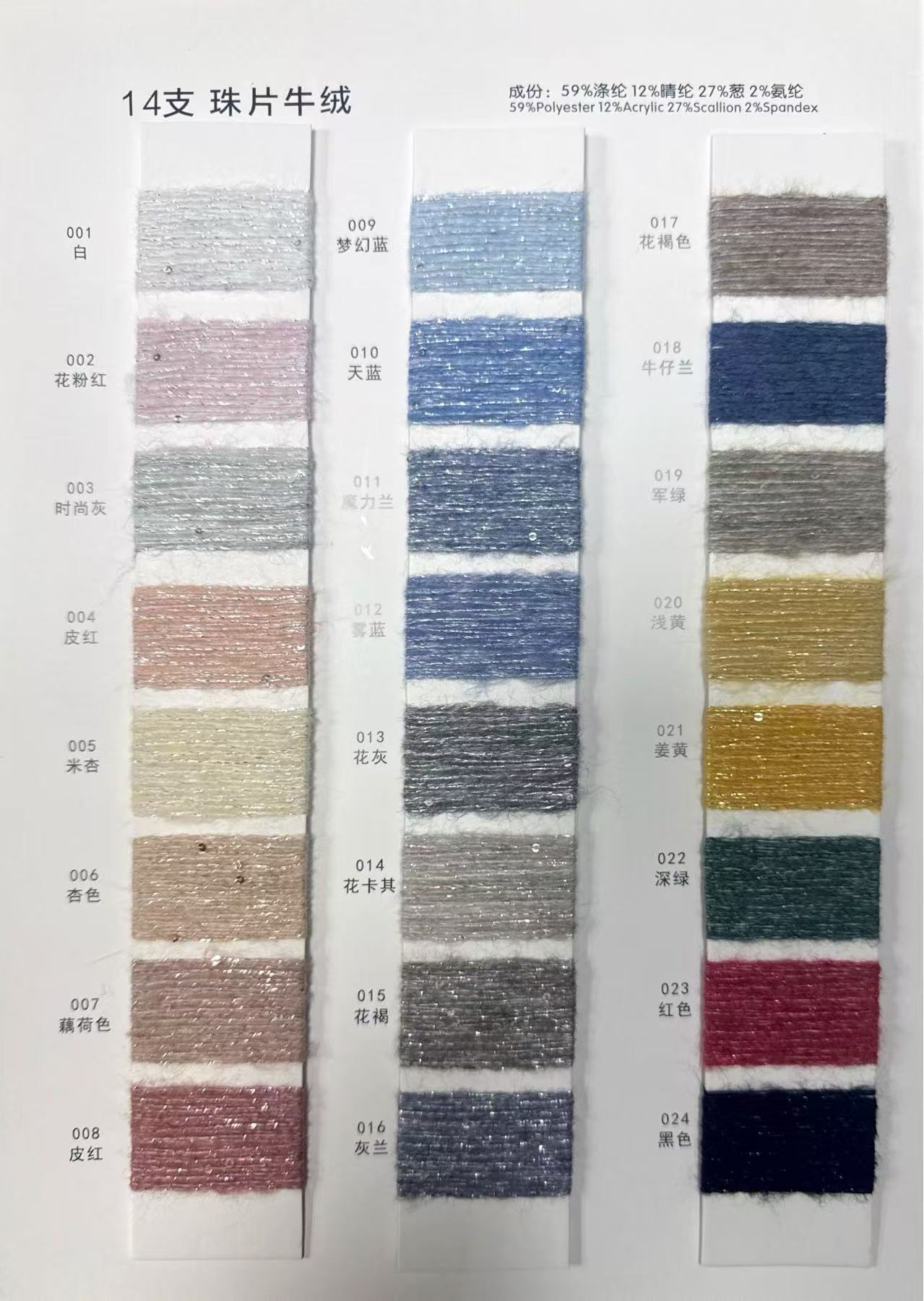 59%滌綸12%晴綸27%再生滌綸2%氨綸