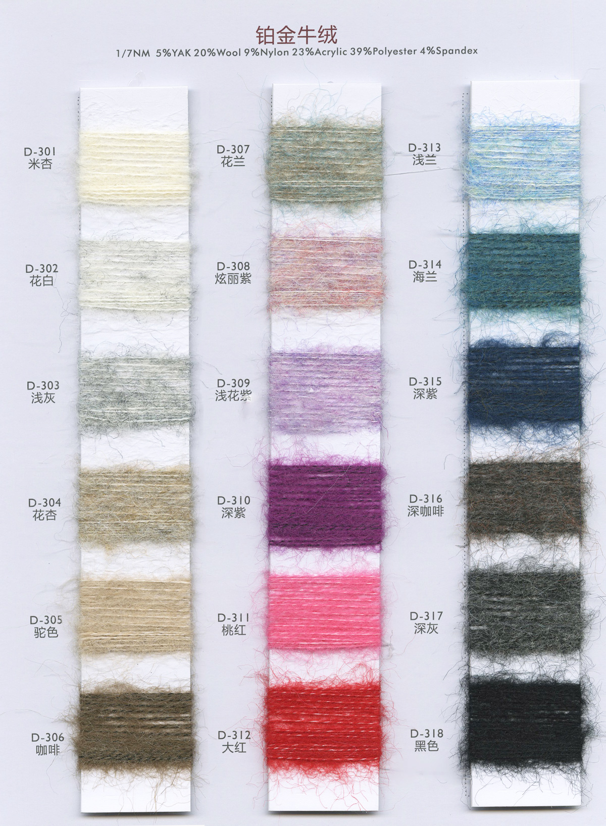 馬海毛、噴毛紗、新型花式紗、圈圈紗、絨類紗線等