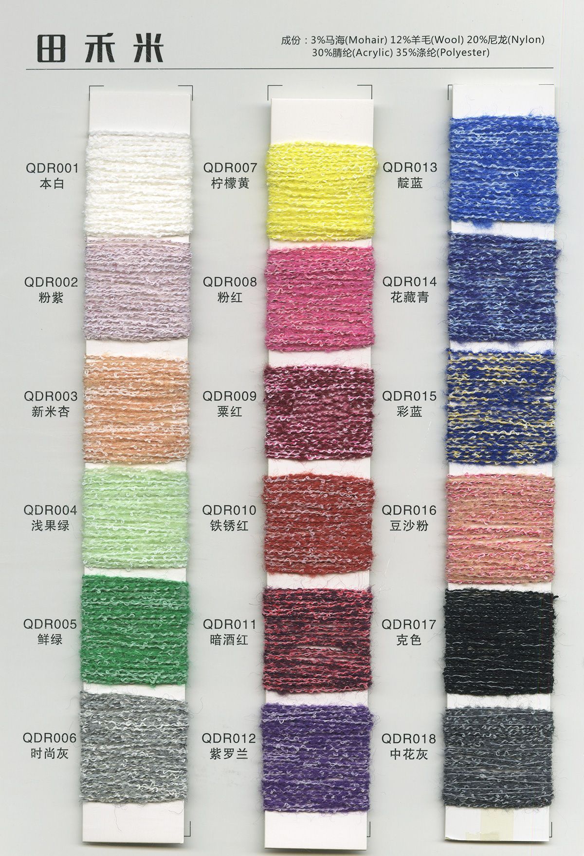 3%馬海12%羊毛20%尼龍30%腈綸35%滌綸