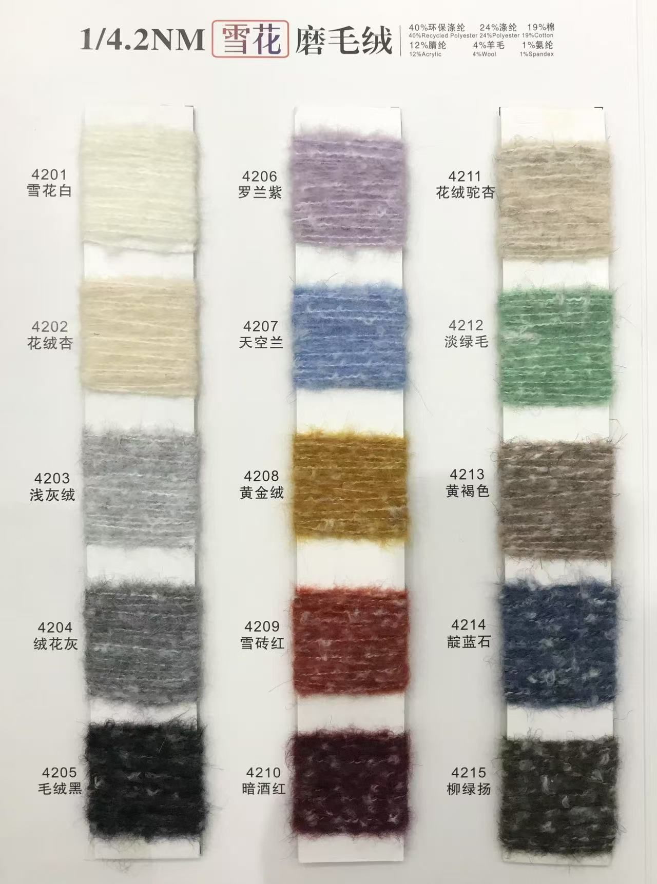 40%環(huán)保滌綸24%滌綸19%棉12%腈綸4%羊毛1%氨綸
