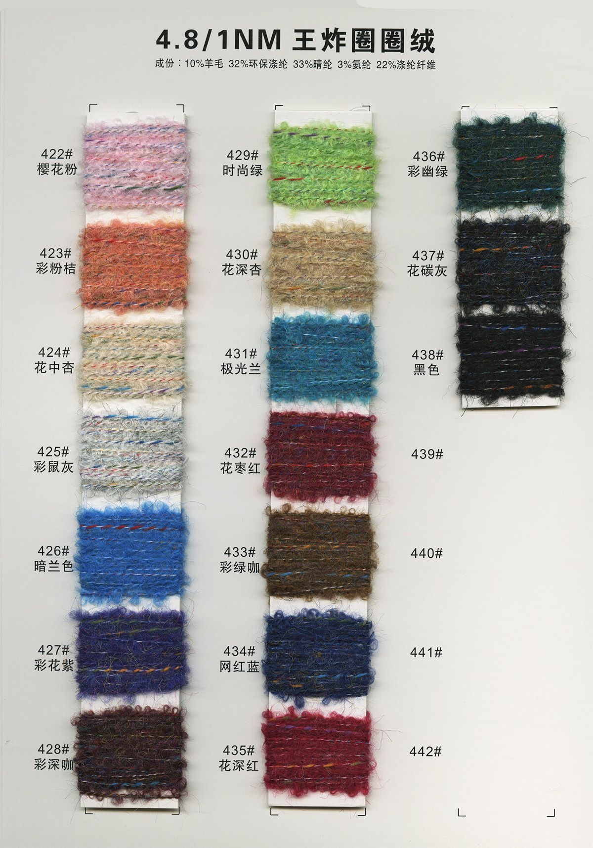 10%羊毛32%環保滌綸33%腈綸22%滌綸3%氨綸