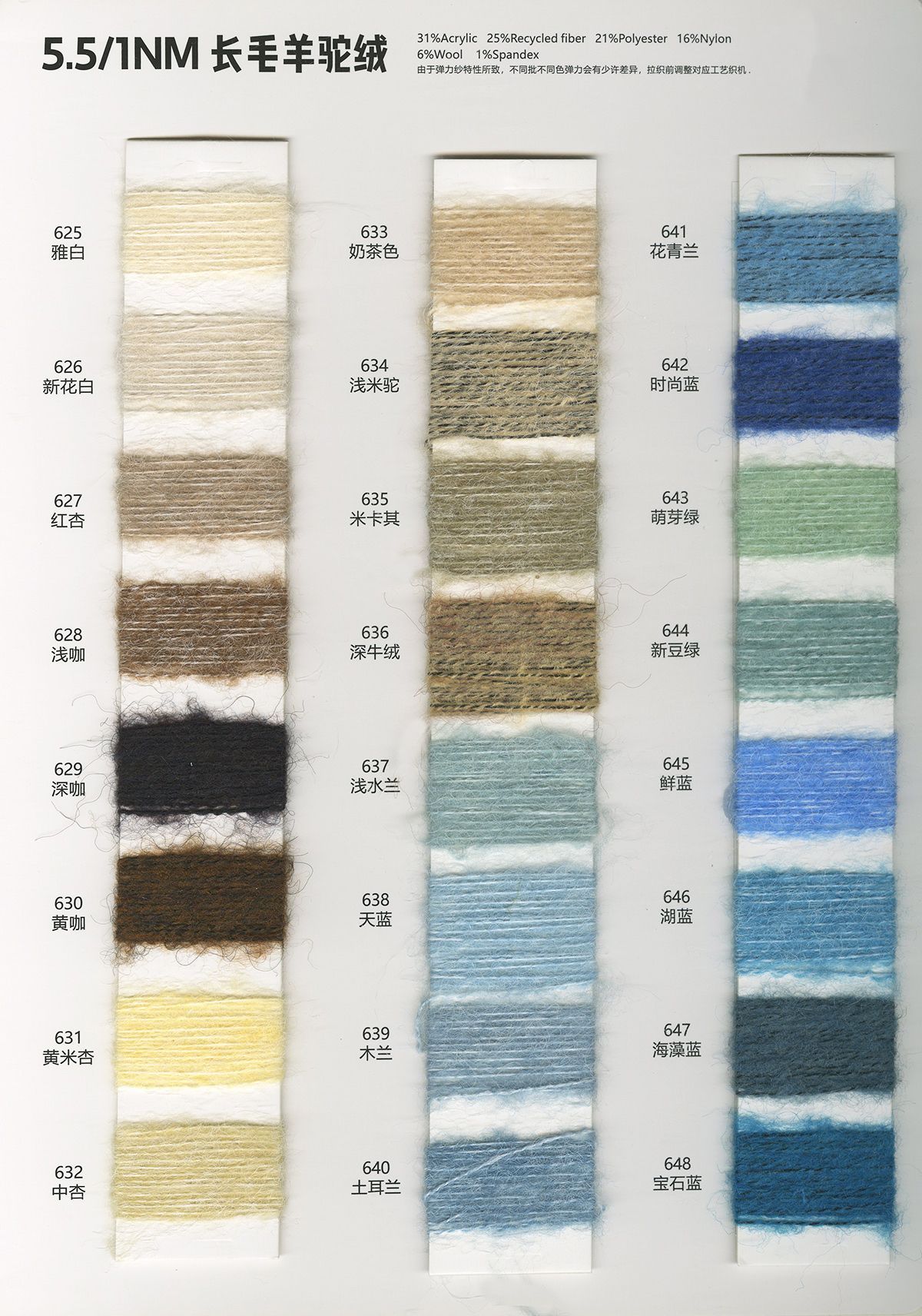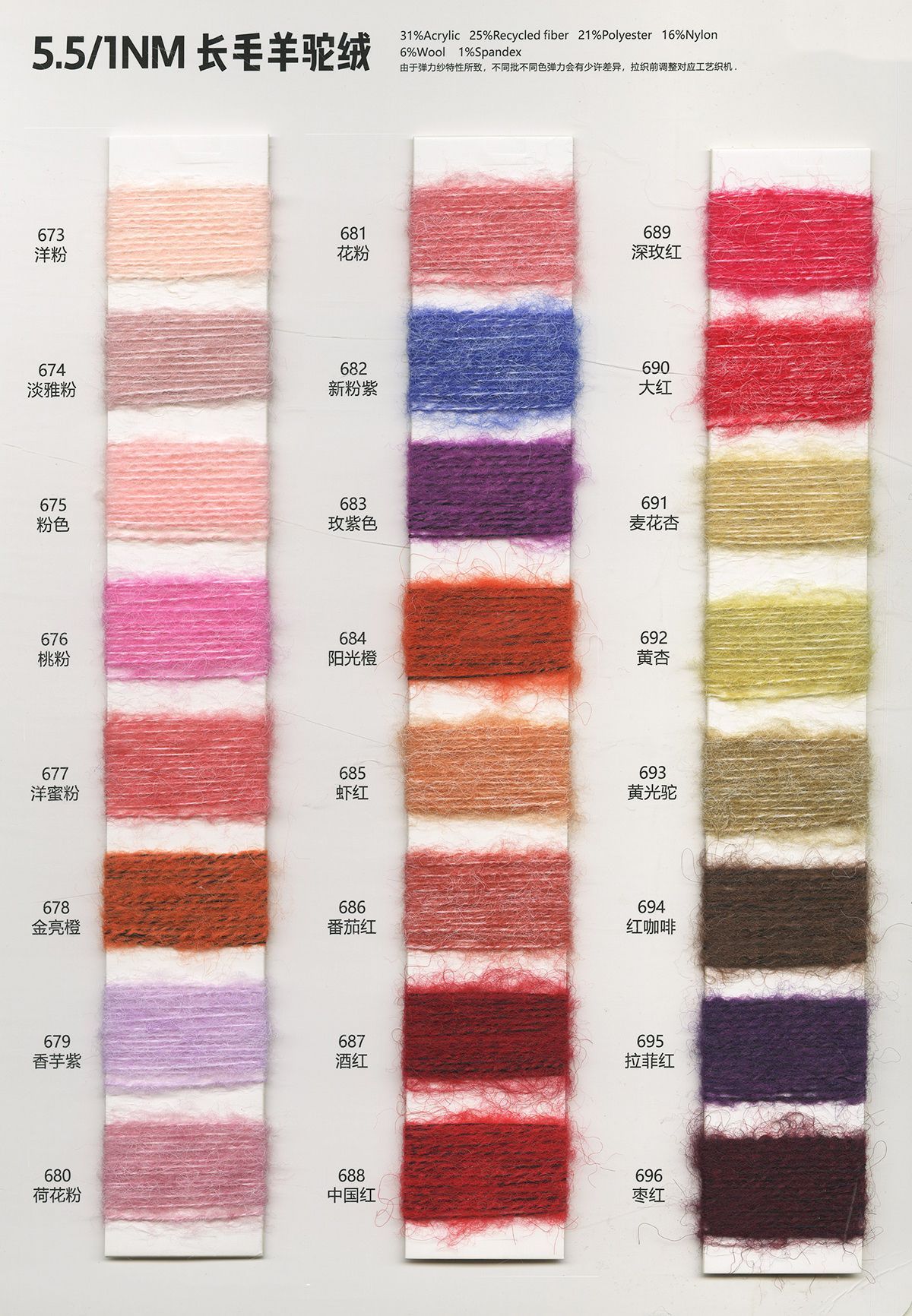6%羊毛31%腈綸16%尼龍25%再生纖維21%聚酷纖維1%氨綸