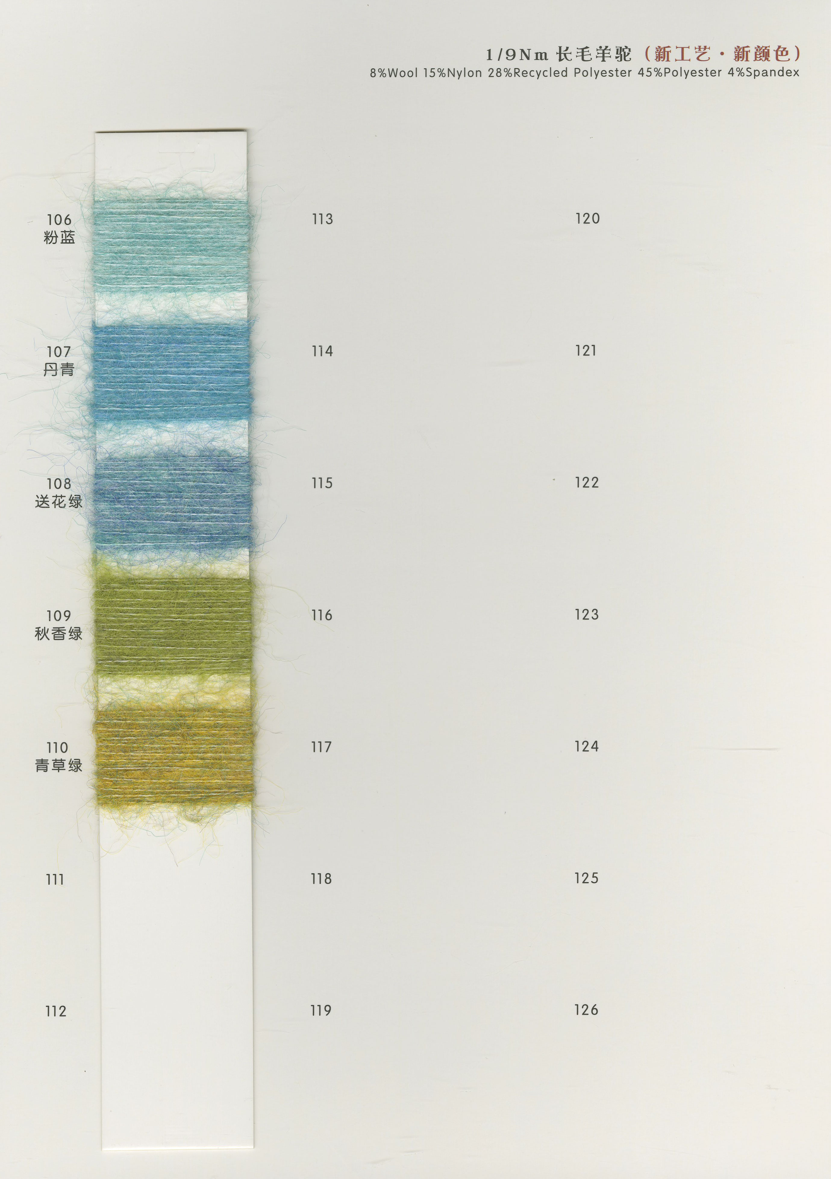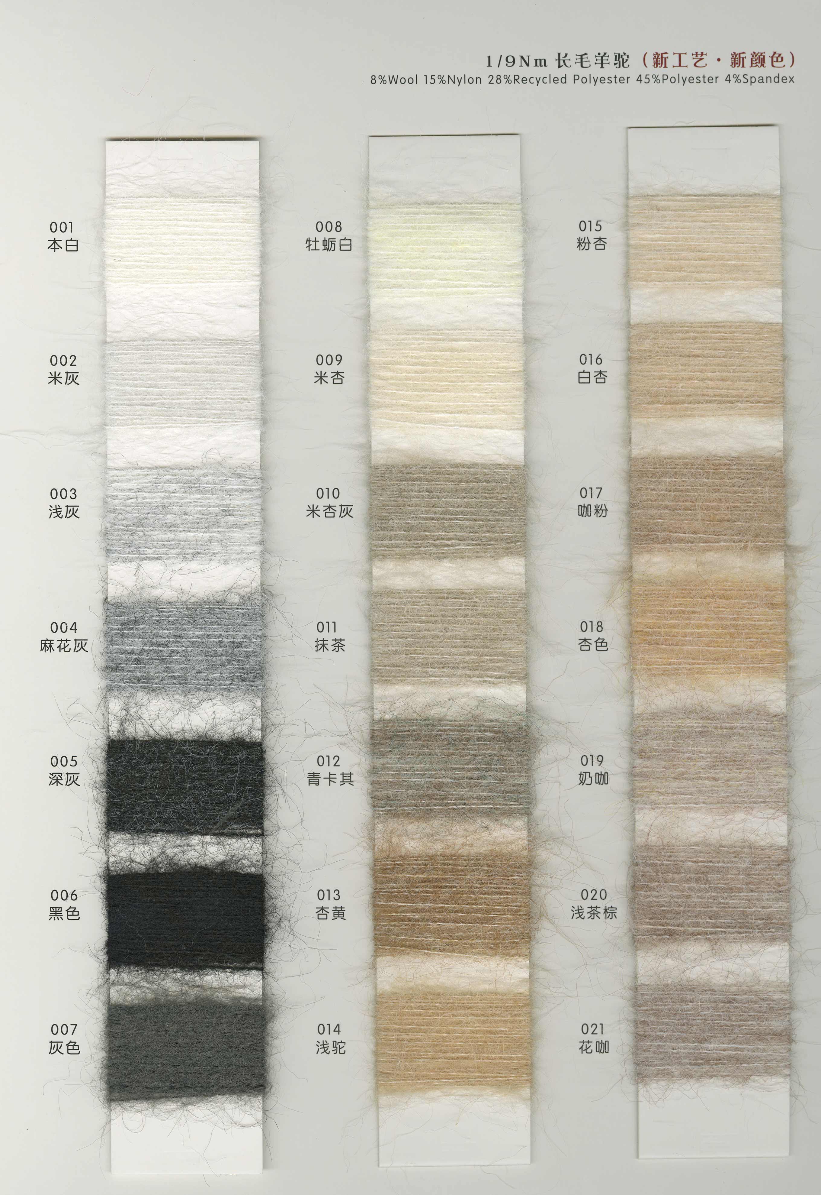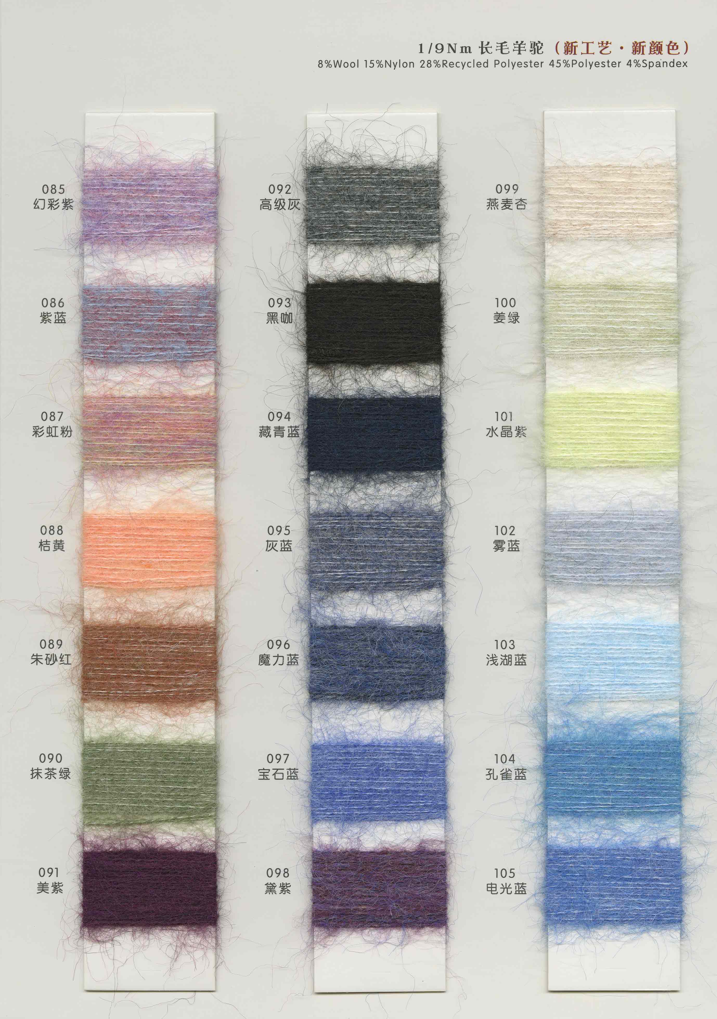 3.3支漸變噴毛紗 6支漸變馬海 15支漸變馬海 3.6支渲彩馬海 13支羊毛馬海 15支長毛馬 28支超細馬海 13支高比例馬海 13支經典羊駝 5.5支超級羊駝 13支珠片馬海 14支珠片牛絨 26支珠片北極絨 10支高端親膚絨 仿貂毛 雪尼爾及各類花式紗