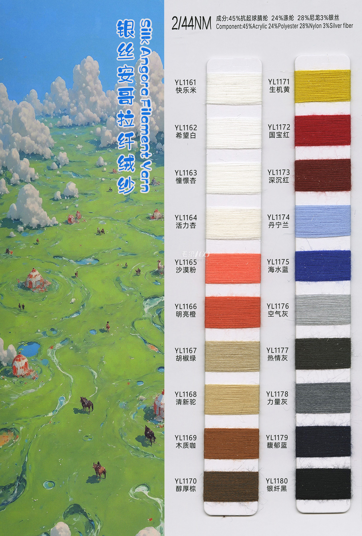 銀絲北極絨、金銀絲羊毛混紡、閃光包芯紗、銀絲包芯紗、金絲包芯紗、紫光包心紗、藍絲包芯紗、高捻銀絲包芯紗、高捻彩金包芯紗、3股銀絲包芯紗、羊毛圈圈紗、銀絲星星絨、彩點黑點北極絨、彩點安哥拉纖絨紗、銀絲安哥拉、閃光安哥拉、彩點黑點安迪絨高比例色紡馬海毛、高比例羊駝馬海毛毛、超細羊駝毛