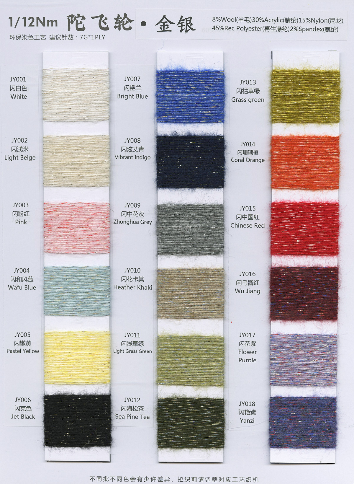 2.8支竹節彩帶棉,3.1支黑邊高速帶,2.3支裙子紗,3支破繭,5.5支美猴王羽毛紗,9支純棉珠片紗,30支珠片爽爽麻