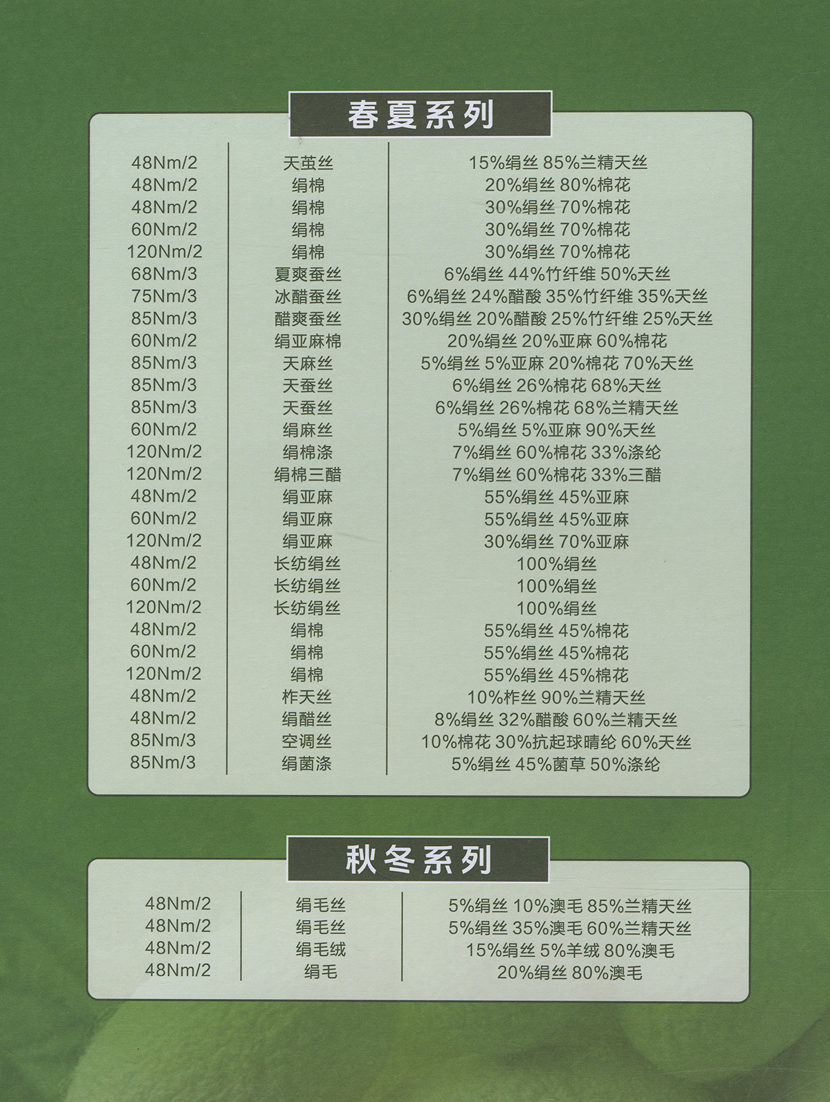 各類品牌粗精紡羊絨,德國(guó)揚(yáng)子羊毛,白廠絲,桑蠶絲,絲棉等。