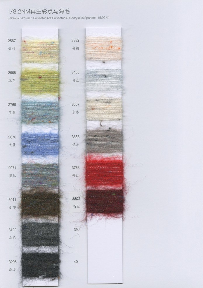 8%羊毛20%再生滌綸37%滌綸32%晴綸3%氨綸