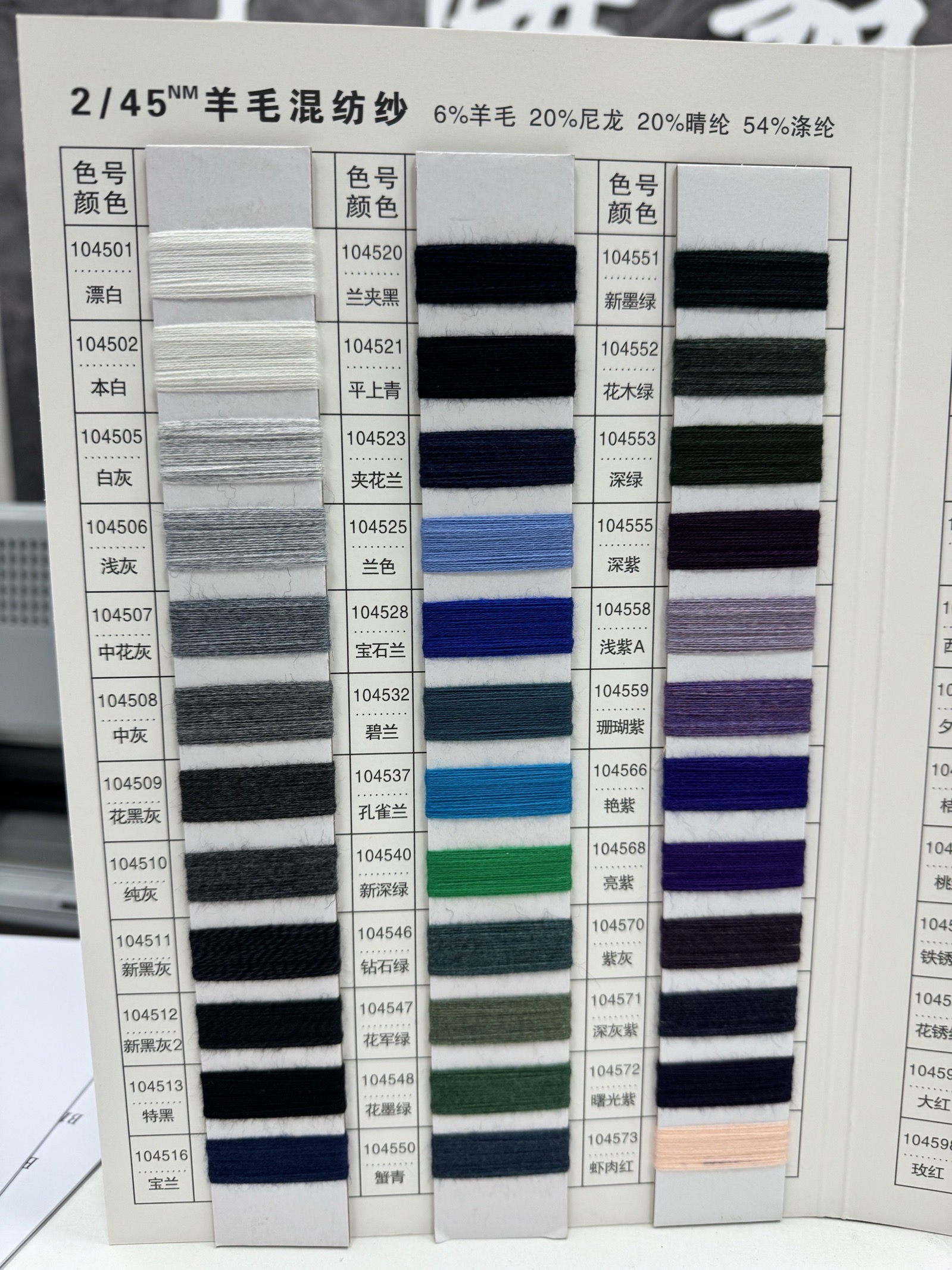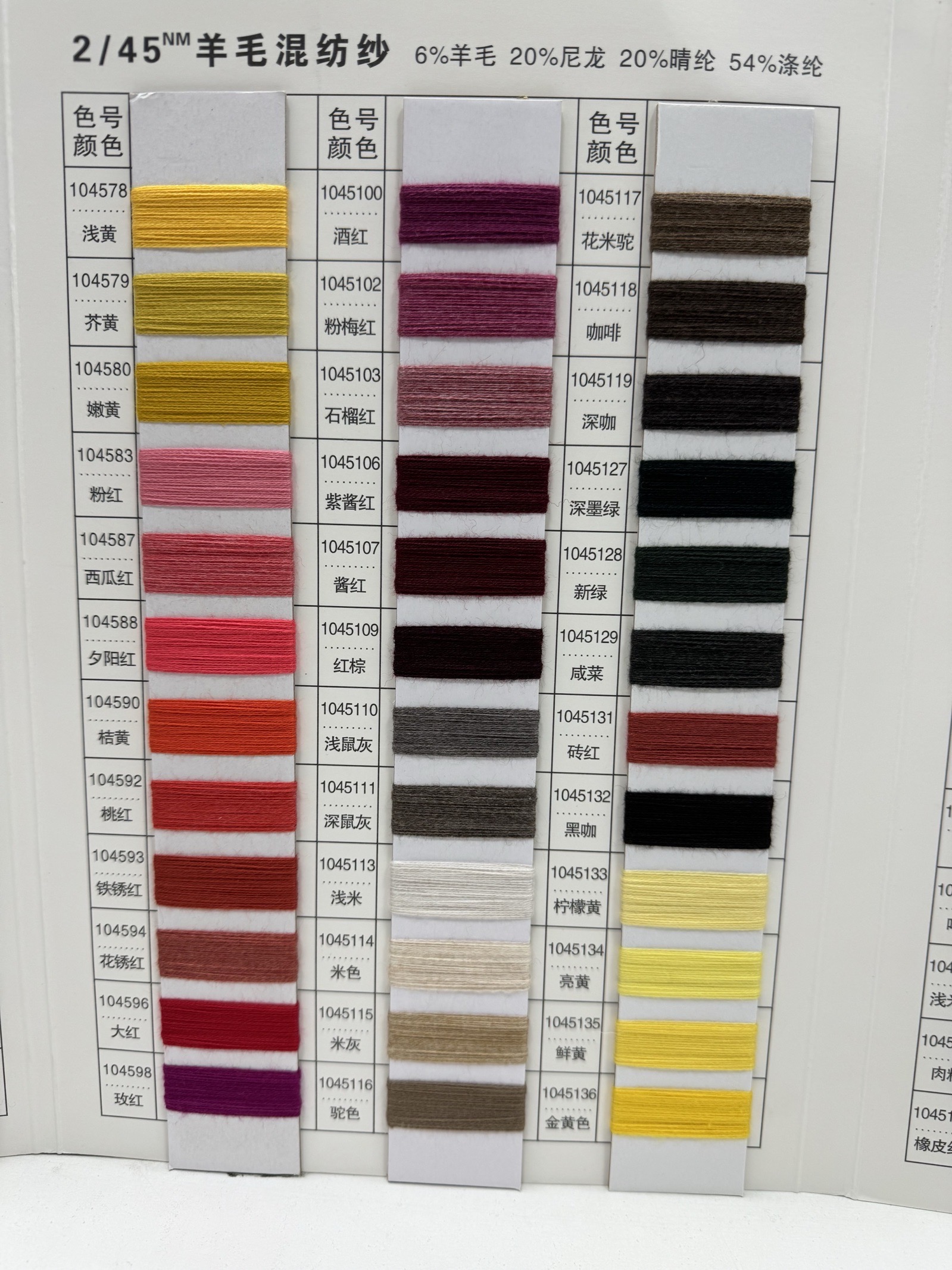 6%羊毛 20%尼龍 20%晴綸 54%滌綸