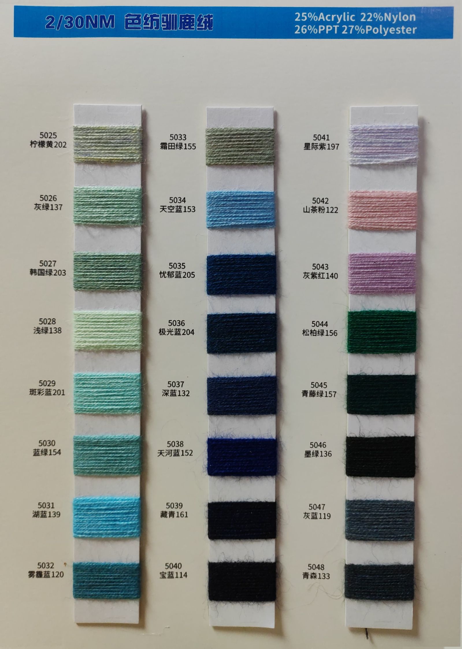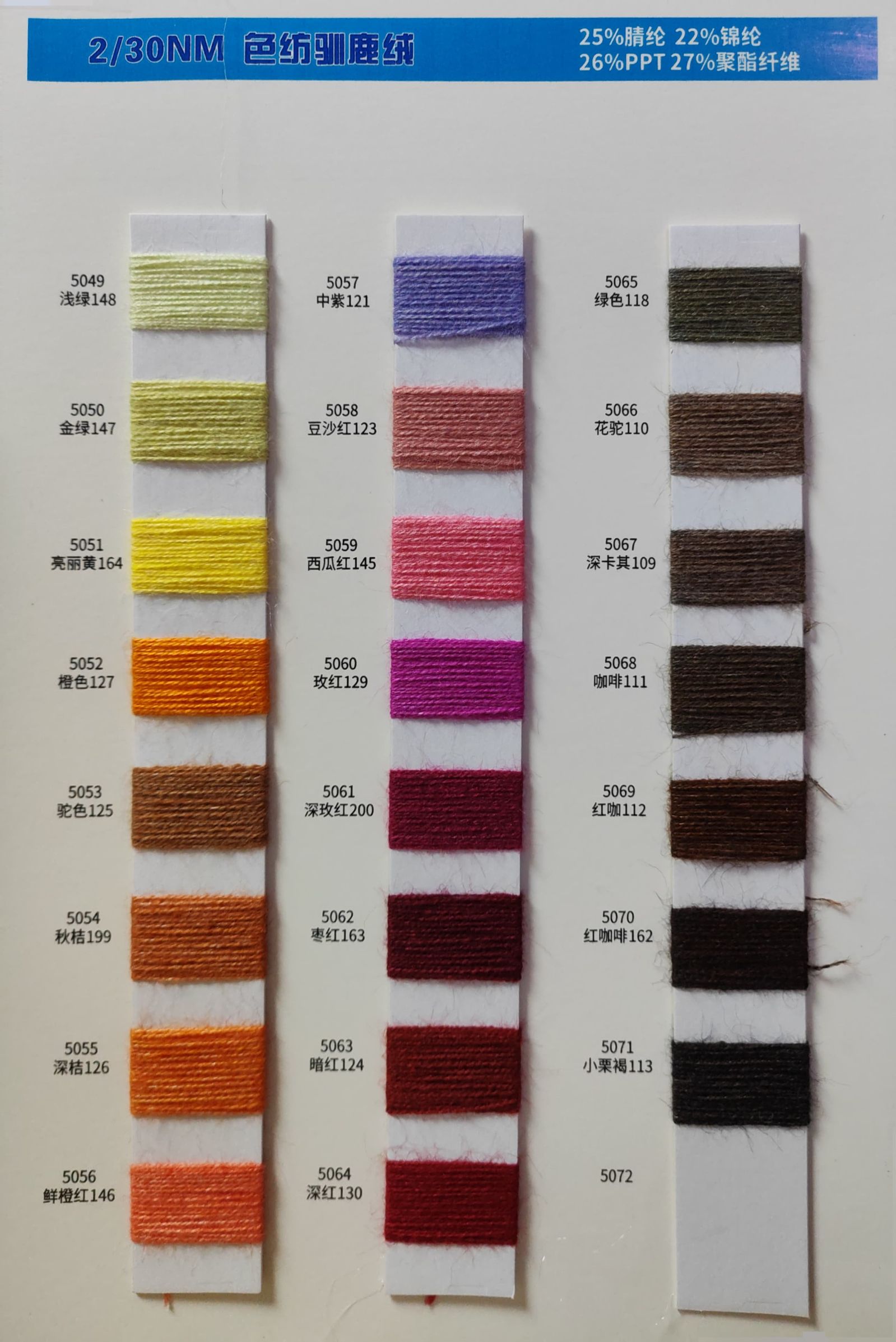 25%腈綸22%尼龍26%PPT27%聚酯纖維