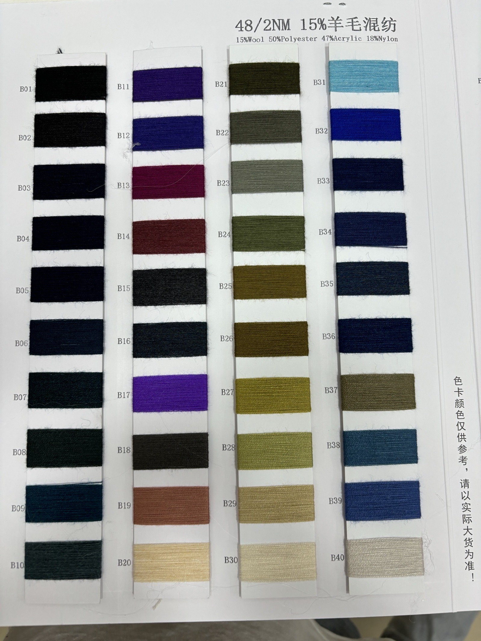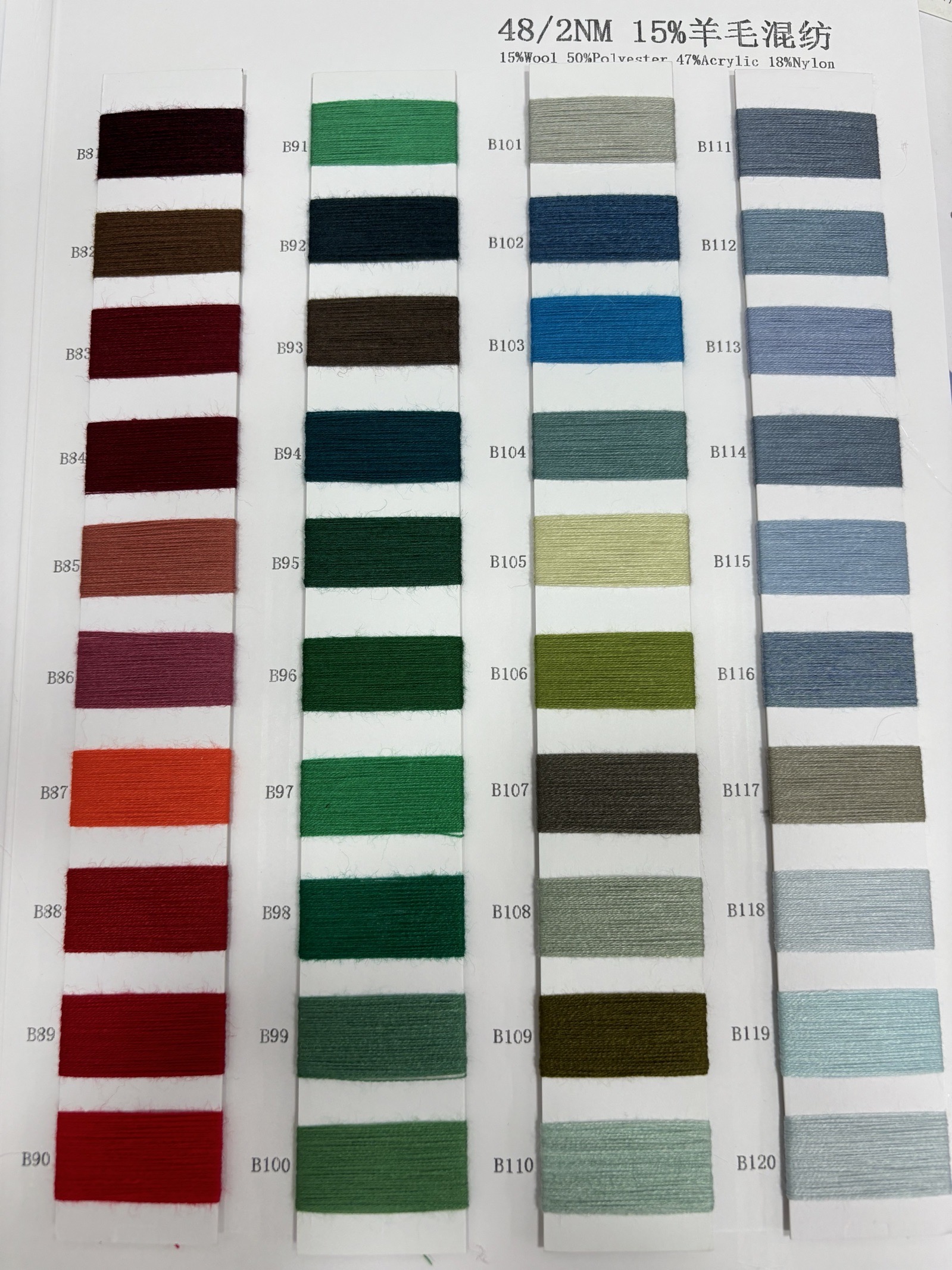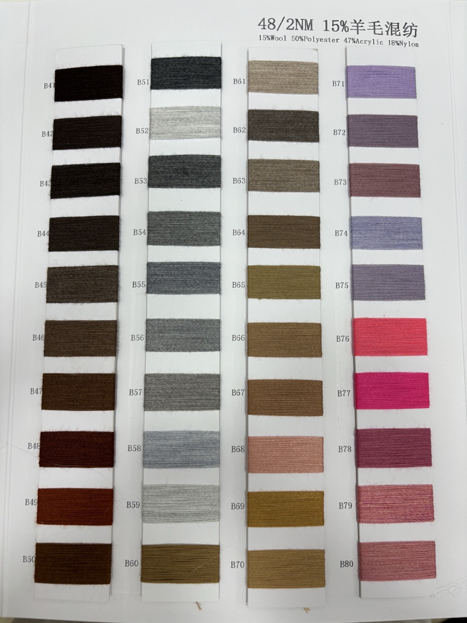 15%羊毛 50%滌綸 47%晴綸 18%尼龍