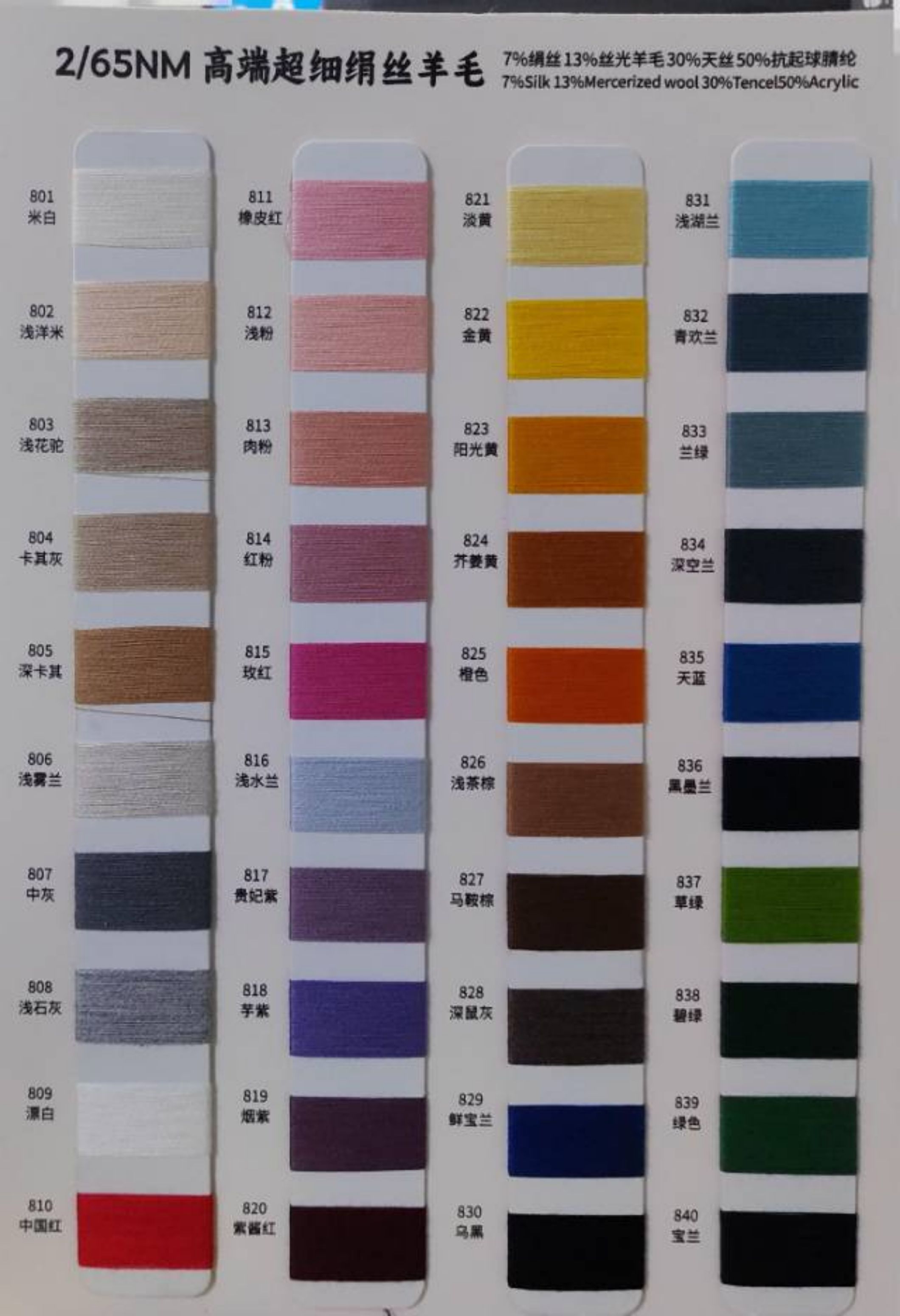 7%絹絲13%絲光羊毛30%天絲50%抗起球腈綸