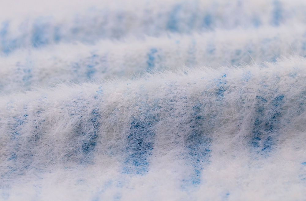 槐花絨采用先進的噴染技術,將色彩與纖維完美融合,呈現出豐富多彩且持久穩定的色澤。這種獨特的工藝不僅賦予了紗線更加鮮明的視覺效果,同時也保證了在多次洗滌后依然能夠保持原有的亮麗色彩。
