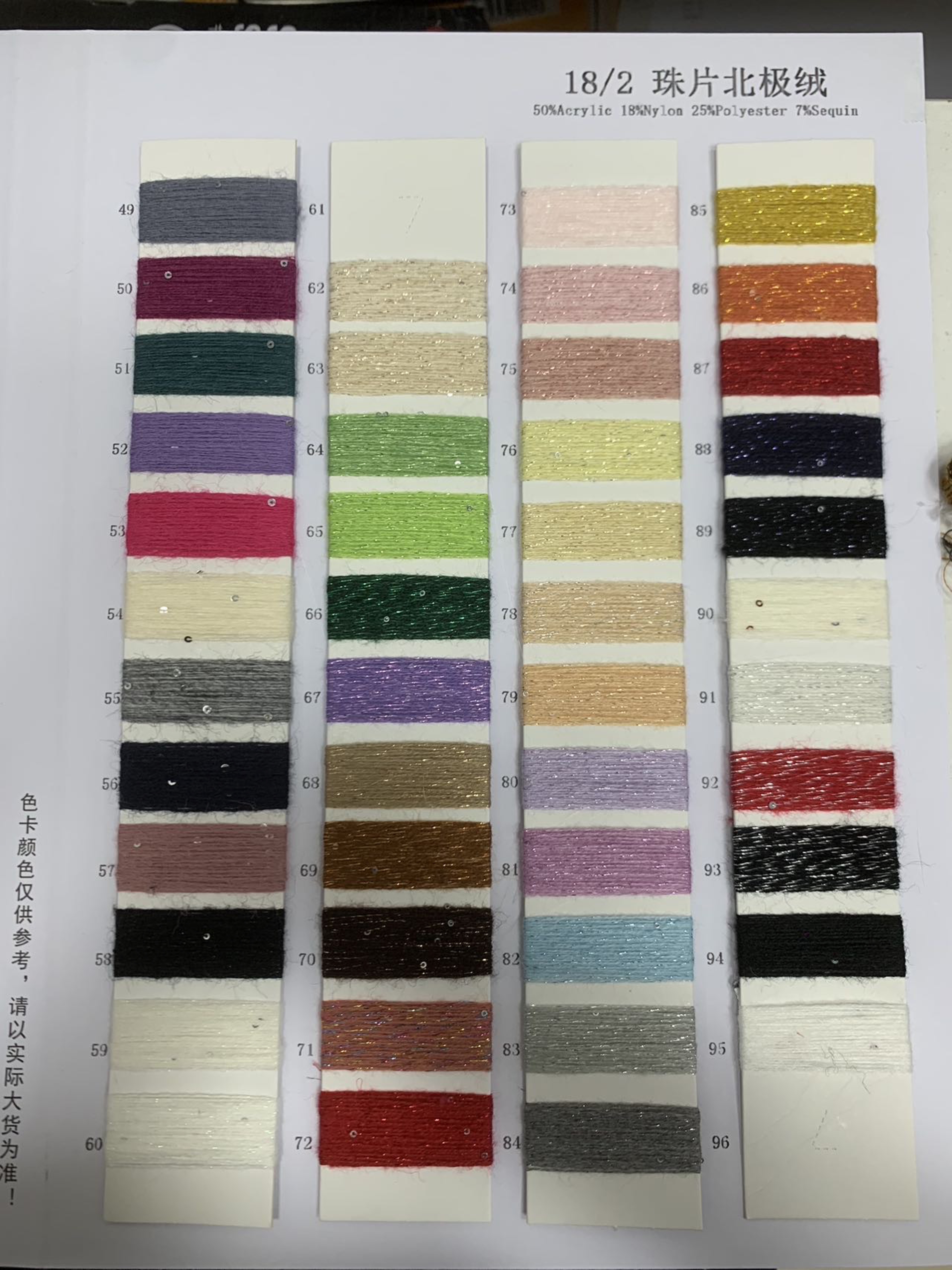 59%腈綸 18%尼龍 25%滌綸 7%珠片
